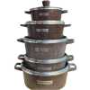 Granite Non-stick Serving Dishes Saucepans Cookware. These products are manufactured from premium die-cast aluminum with a long-lasting non-stick coating. The use of the highest quality and appropriate materials in the production process combined with each article being hand-finished guarantees the high quality of the products for a long period. Due to the exceptional coating, the saucepans are the perfect solution for cooking healthy and dietetic food without fat and very easy to clean. This cookware range has a drilled base perfect for healthy cooking. Excellent for frying and braising with perfectly shaped heat resistant handles. With modern design and quality cookware is manufactured from die cast aluminium (thickness 5-8mm) with non-stick granite coating. Die-cast aluminium cookware is the perfect solution for cooking healthy and dietetic food (without fat) and very easy to clean. Come with glass