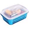 MATERIAL AND TECHNOLOGY: Food grade PP material is used. PP material makes the environmentally friendly, healthy and safe material can be used with confidence. DESIGN: The double-layer design makes it possible to save water resources to the greatest extent and make cleaning more convenient. The inner drain holes are neat and uniform in size, which can ensure fast draining and quick drying. The design with lid can also be used as a crisper. PURPOSE: The double-layer drain basket is more convenient to use. It can be a multifunctional drainage basket integrating soaking, cleaning, water storage and drainage. After cleaning fruits and vegetables, fashionable colors can also be used as plates for fruits or vegetables. TIP: Do not use corrosive cleaners or hard materials such as steel wool to scrub, and keep away from open flames. APPLICATION: Suitable for cleaning fruits and vegetables in homes, hotels, restaurants, bars, other places and kitchens. It can also be used as a storage box for storing food. This package includes: Double-layer drain basket with lid*1 One thing is multi-purpose. The drain basket can not only drain water, but also store, store water, wash, and lift the inner layer directly after cleaning. The drain hole in the inner layer can drain water quickly. The drain basket with lid can be used as a fresh-keeping box. Advantages: easy to operate and easy to drain after cleaning, and the bottom non-slip design ensures that it will not slide easily during use. The surface is smooth and has no burrs, and the hand feels fine and does not hurt your hands. The curling design on both sides is convenient to hold with both hands for better drainage. The small side handles are more convenient to uncover.
