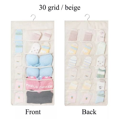 DURABLE OXFORD & SAVING TIME: Premium oxford fabric, which is easy clear with hand wahed and durable mesh pockets, transparent netting design makes you easy to find what you need at the first glance; saving you precious time. 30 MESH POCKETS HANGING CLOSET STORAGE: Side A has 12 pockets, 6 extra large mesh pockets for big items, you can easily fit a thick pantyhose/leggings/scarf/ bra or baby nursery clothes or dolls in every pocket, and 6 middle-sized mesh pockets. Side B has 18 middle-sized mesh pockets for underwear, socks, bracelet, cosmetics, hair and fashion accessories and all sorts of electronic devices to keep your accessories neat & organized. DUAL-SIDED HANGING CLOSET ORGANIZER: Durable double sided closet hanging organizer, Breathable mesh premium oxford fabric design helps you quickly identify stuff through clear pockets, saving you time from blind searching. 360 DEGREE ROTATING HOOKS HANGER: Heavy duty 360 rotating metal hanger, can change 2 sides easily. Hanging closet storage can be hanging in closet rod, clothes Bar, laundry rack, bedroom, storeroom, dorm, travel RV etc, bring a clean and tidy appearance to your home. SAVES YOU SPACE AND MAKES YOUR LIFE EASIER: The front small pockets for small items, for example, Socks, panties, bracelet, jewelry, cosmetics, glasses, hair clips. The back middle-sized pockets for items, you can easily fit undergarment, toy, jewelry, snack, medicines, small tool, office supplies, household items etc. Product Dimensions: 1.2 x 36.83 x 77.47 cm; 150 Grams Date First Available: 13 June 2020 ASIN: B08B4WTMMD Item part number: B1564646 Item Weight: 150 g Item Dimensions LxWxH: 12 x 368 x 775 Millimeters