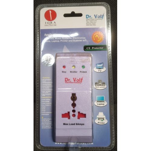 Key Features: Dr. Volt TV Guard IQ-TP6UK-ECO; 80-255V, 6 Amps, Microprocessor Power Surge Protector Based-Eco Model – Green. Microprocessor-based, NonFlammable Body Premium quality 7 years warranty