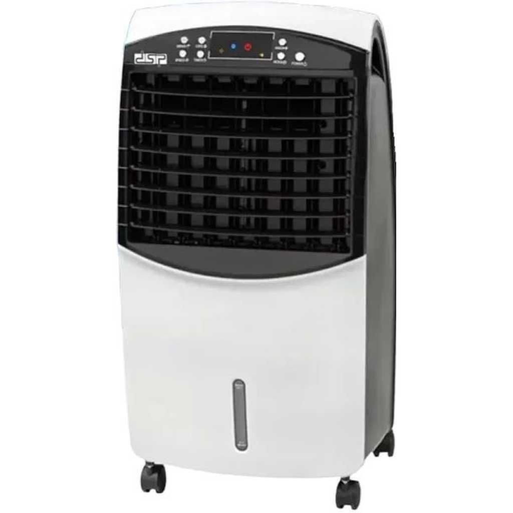 Key Features: Beat the heat with the DSP air cooler equipped with a remote control device. With its stylish design and powerful cooling capabilities, it is perfect for any room in your home or office. Thanks to the included remote control device, you can easily operate it from anywhere in the room, allowing you to adjust the settings without the need to move. It comes with immense cooling capacity suitable for medium to large-sized rooms, providing cool and refreshing air that makes you feel comfortable and revitalized. With a power capacity of 65 watts, it ensures strong and efficient performance in energy consumption. Three-speed levels, allowing you to choose the appropriate speed for your needs. With an operating frequency ranging from 50-60 Hz, it ensures stable and sustainable performance. With a water tank capacity of up to 9 liters, it provides continuous cooling for long periods without the need for frequent refills. With a rotation speed of up to 1100 revolutions per minute and an air flow speed of 8 meters per second, this provides quick and efficient cooling. With an air flow capacity of up to 500 cubic meters per hour, it ensures optimal distribution of cool air throughout the room. Dimensions of 23 * 38 * 72 cm make it easy to place anywhere without taking up much space.