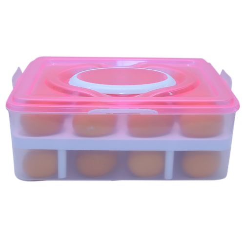 Egg Storage Container -Pink Keep eggs protected and organized with this covered egg holder tray. Made of sturdy food-safe BPA free plastic, this unique egg container features a transparent lid for clear visibility and a built-in handle, making the tray easy to slide out and remove from the refrigerator when needed. Stacking neatly in the fridge, the tray is supplied with a sturdy lid so another egg box or other food items can stand on top, saving space and keeping the refrigerator fully packed and organized. Much more attractive, practical and hygienic than store bought egg containers and a perfect carrier and holder for those who raise chickens, the egg tray can be hand washed with mild detergent and water – not suitable for dishwashers. This is a 100% New and High Quality product! Material: Plastic Color: Pink.Quantity:1 Tight, convenient for house keeping, carrying and camping .Plastic egg storage box holds up to 32 eggs at one time Note: Please open and close the box carefully,because the eggs are fragile Package Content: 1 X Egg container Features & details Perfect Storage Box to store eggs safely as well preserving the freshness.It can accommodate 32 Eggs (In 2 Layers) at a time. Transparent egg tray design for easy visibility – never run out of eggs again. Distinctive see-through plastic egg holder make ideal packaging for hygienically. Hygienic BPA free & food grade plastic container keeps eggs fresh – hand wash with mild detergent. This egg holder keeps stacked items in securely place, whether in the freezer, refrigerator, or cupboard. Fits neatly in refrigerator Product Dimensions – 28 x 22 x 11 CM :: Capacity – Holds up to 32 Eggs :: Material – Plastic :: Color . Pink:: NOTE:- The image of the product is a digital image and there may be design depending upon various devices and screens.