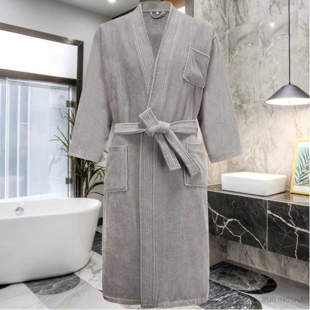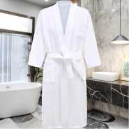 Cotton Bathrobe – White The quality of towels is determined by the GSM (grams per square metre). Poor quality towels have a GSM of between 200 – 300. Better quality towels have a GSM of between 400 and 600GSM. The more grams per square metre means that the towel is more absorbent and longer lasting. Key Features: 100% cotton Lightweight, breathable bath robe that is suitable for both men and women Features a kimono styled collar along with 2 convenient side patch pockets 100% Cotton material is incredibly soft and comfortable to wear Includes an adjustable belt for a fitted look and a waffle cone texturized fabric design White full length waffle robe is great for relaxing and lounging at home