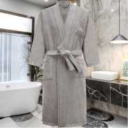Cotton Bathrobe – White The quality of towels is determined by the GSM (grams per square metre). Poor quality towels have a GSM of between 200 – 300. Better quality towels have a GSM of between 400 and 600GSM. The more grams per square metre means that the towel is more absorbent and longer lasting.