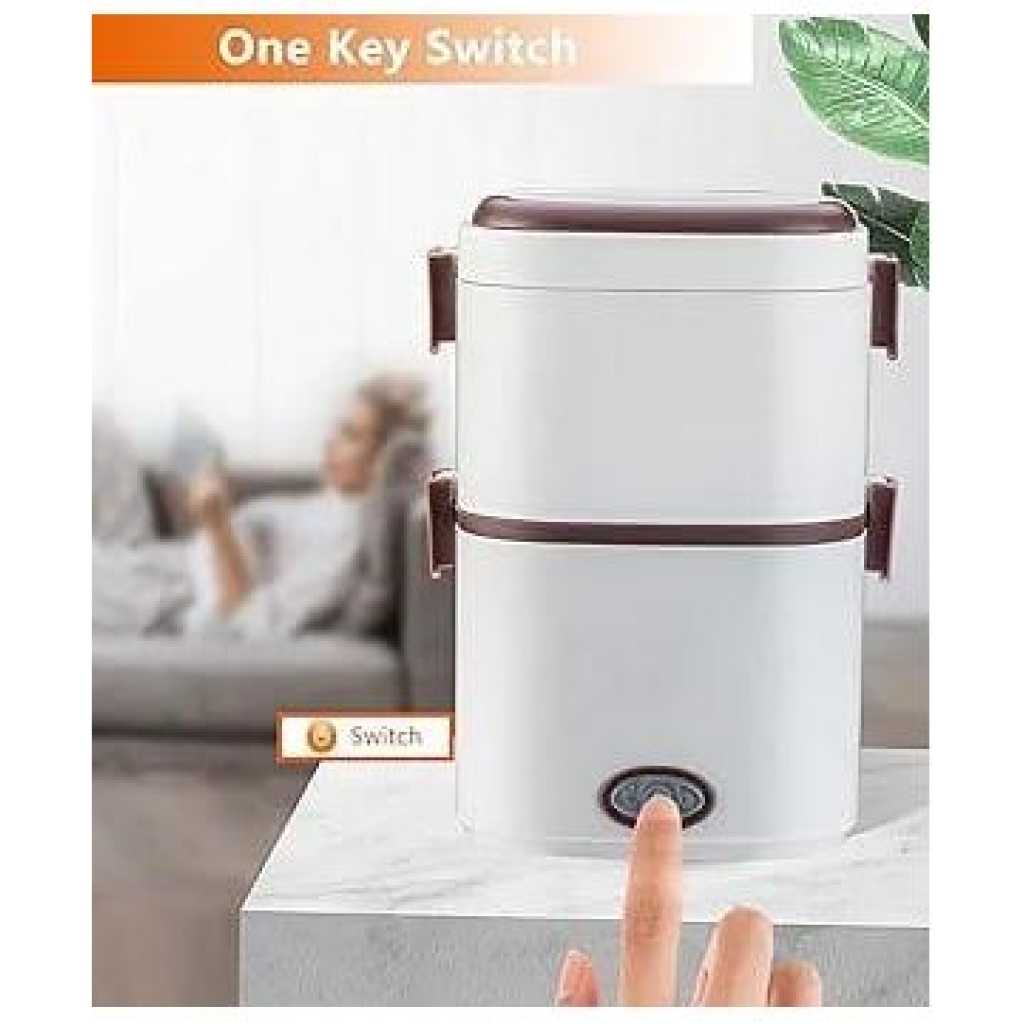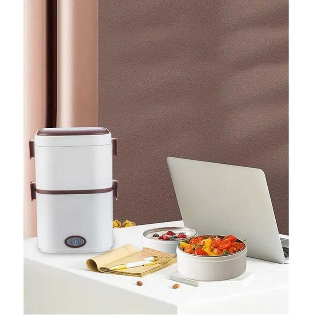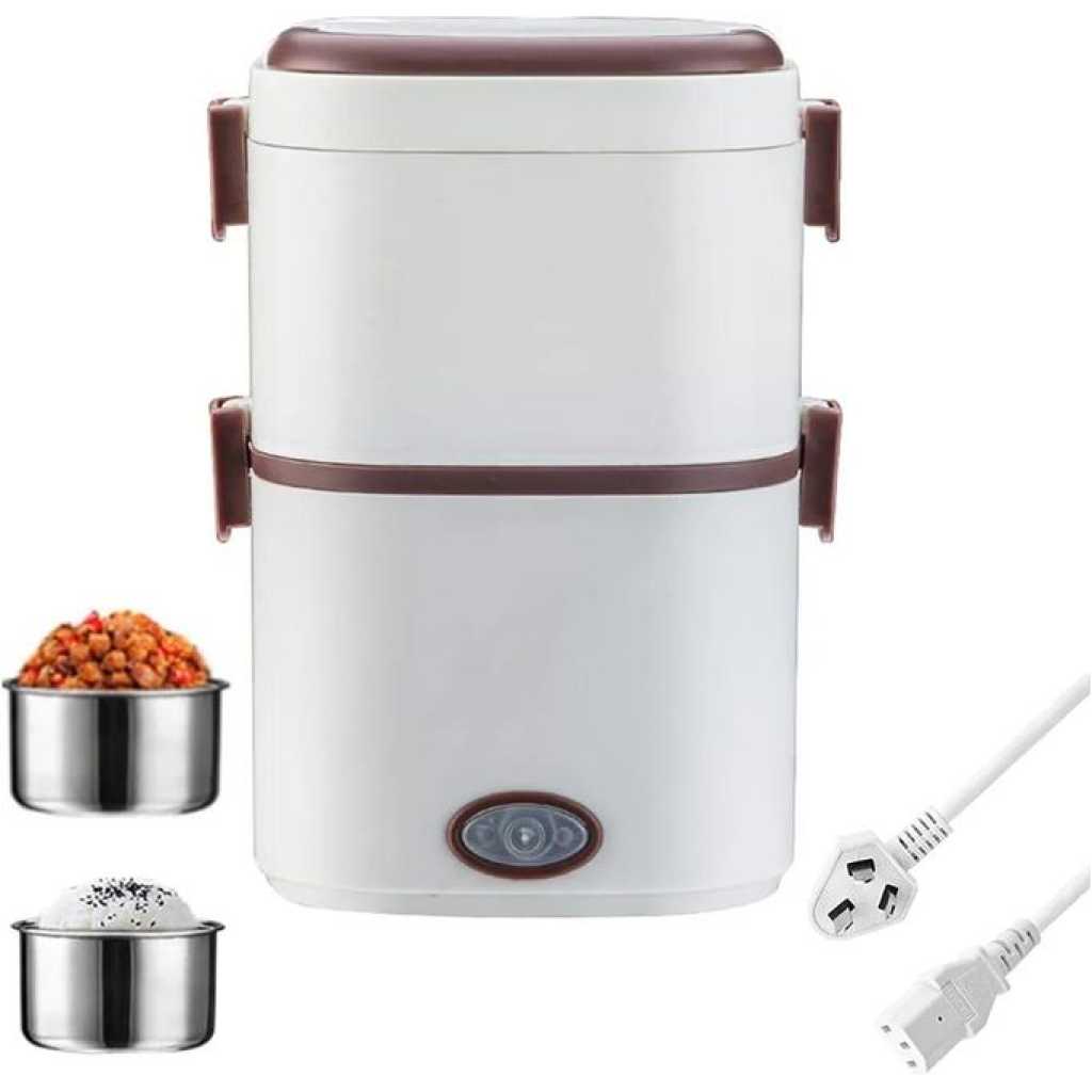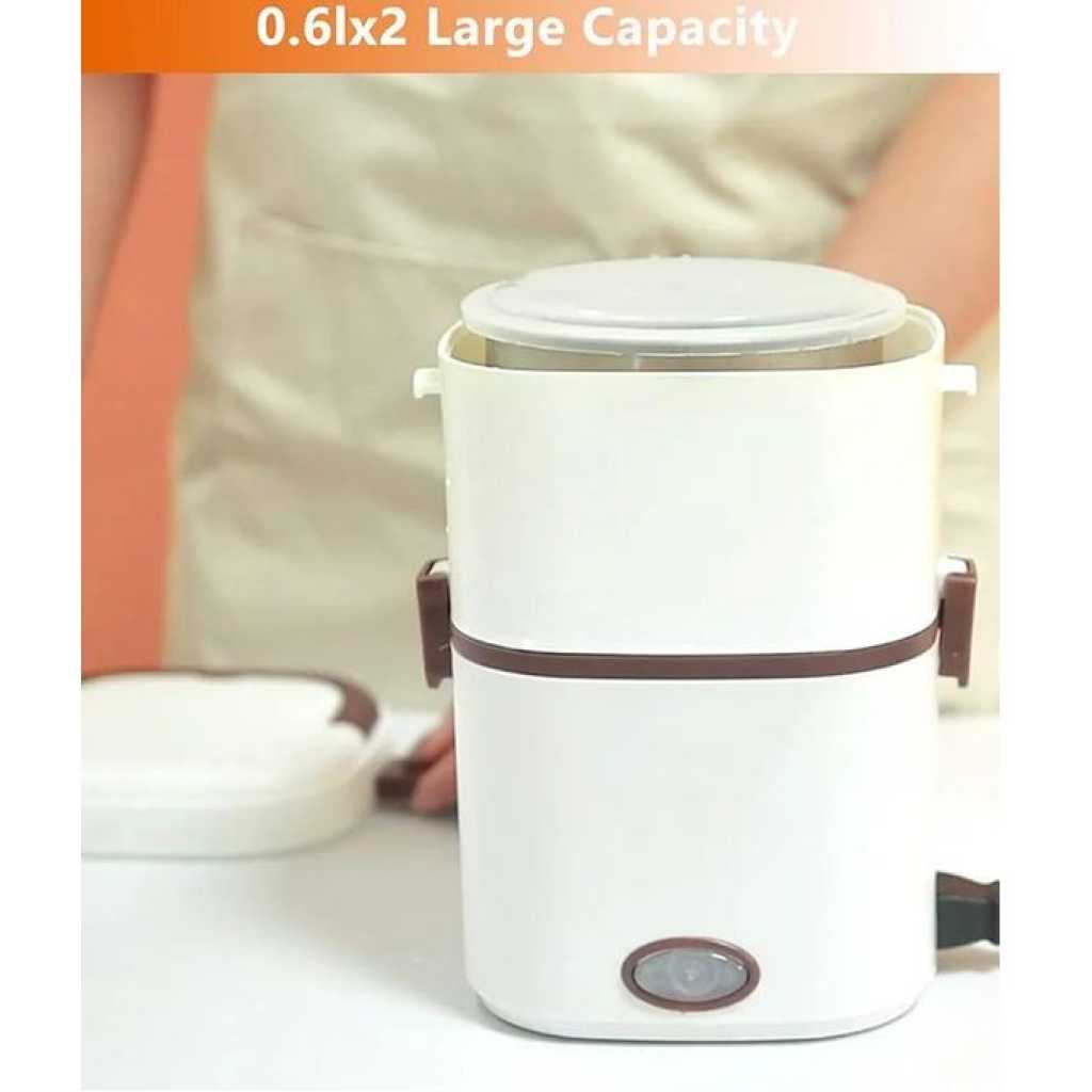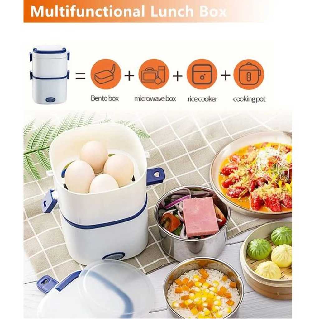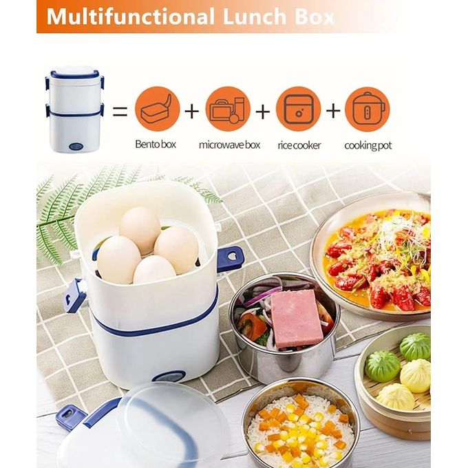 Key Features: Electric Lunch Box Food Heater 1/2 Layers Heated Lunch Boxes Double Protection Stainless Steel Portable Mini Microwave Food Warmer for Adults Workplace Travel Multifunctional Cooking】Heating lunch box with stainless steel bowl and 110v/220v office/home use plugs are included. You can heat or cook your meal at home, school, office or during travel. ✅Double Protection】Portable food warmer anti-dry protection and anti-high temperature protection, during the cooking process, lunch heater portable will automatically stop working if there is no water to prevent dry burning. ✅Large Capacity Tray】Lunch box warmer 0.6l 2 removable inner containers separates your different dishes conveniently. At the same time, it is equipped with an egg steamer to provide daily nutrition. ✅200W Fast Heating】Portable microwave adopts the latest designed ptc constant temperature heating, and uses 200w high power.Low-consumption and high-efficiency thermal cycle, heats a meal thoroughly in just 20 to 30 minutes. ✅Food Grade Material】Our electric cooking lunch box is made of food grade pp material, inner container is made of 304 stainless steel. High quality temperature resistant, easy to clean