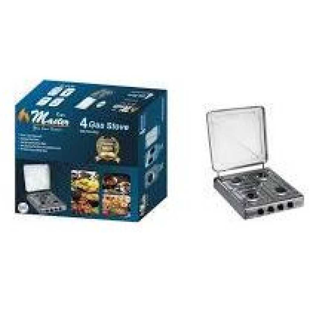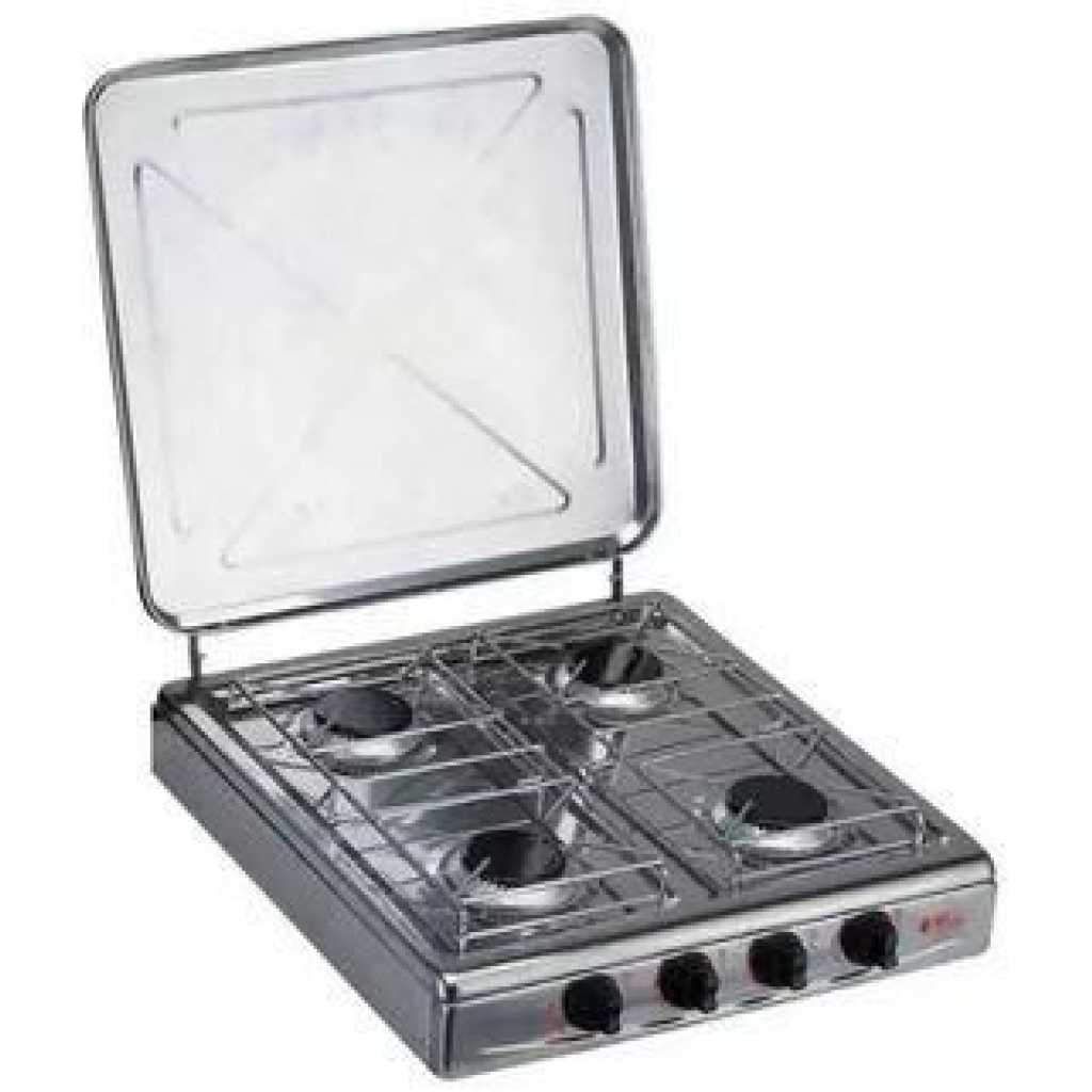 Key Features: 4 burner table top design Push” and Turn” Igntion knob design so children can not easily turn the knob Ignition produces powerful sparks which easily ignites the burner, no match or lighter needed Jet type gas pipe can not be blocked by dirt or small objects easily Control knob has different stages of micro control making suitable for all cooking types Specially designed burner and burner cap with high energy efficiency which can lower gas consumption