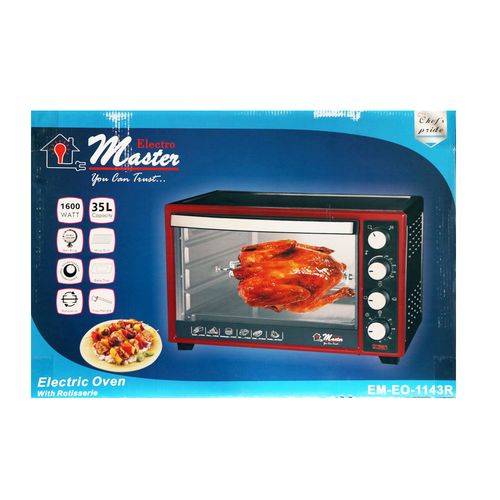 Enjoy everyday meals with this Electro Master EM-EO-1141 20Litres Oven. Its multi-stage cooking facilitates you to use microwave, grill and convection at the same time making your cooking experience memorable. The in-built memory stores the cooking levels simultaneously, thereby saving time and making cooking convenient. Buy Electro Master EM-EO-1141 20Litres Microwave Oven on TilyExpress at a cheap price. SPECIFICATIONS EM-EO-1141R Capacity: 20Litres Oven 1600Watts Rotisserie Bake, Grill