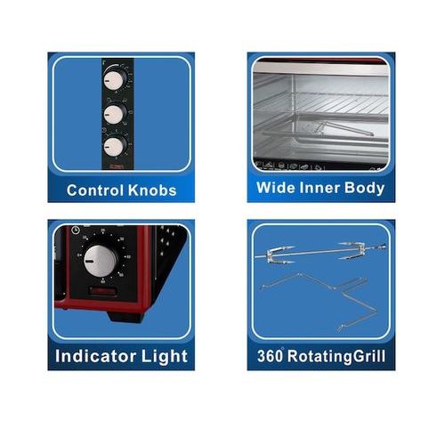 Key Features: EM-EO-1141R Capacity: 20Litres Oven 1600Watts Rotisserie Bake, Grill..