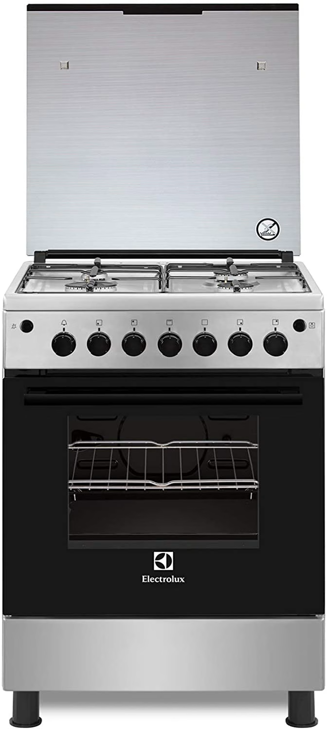 Key Features: Electrolux 60X60 cm Gas Cooker With Oven & Grill, EKG6000G6Y – 1 Year Warranty. Ultra-Flat Design – New ultra-flat design for oven door with its invisible screws, makes cleaning much easier. Flexible cooking dimensions – Thanks to three different-sized burners, you can enjoy the freedom and flexibility of using different sized pots and pans Cooking function top oven – Grill + bottom Flame safety device: Automatic gas safety cut-off on oven, grill, and hob if flame is extinguished Timer function: Alerts you when your dishes are ready Glass lid Integrated timer Adjustable legs