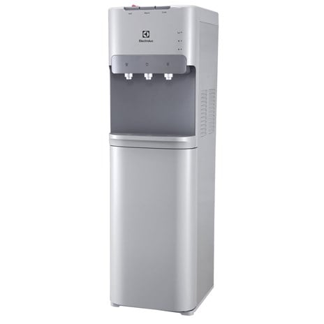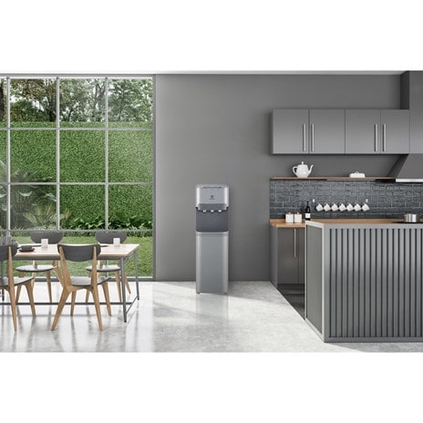 Electrolux UltimateHome 700 3-Taps Bottom Loading Water Dispenser With Child Lock Safety EQAXF1BXSG – Silver. The bottom loader makes handling heavy bottles easy. Three water spouts: hot, room temperature, and cold. LED indicators add to ease of use. LED indicators add to ease of use. Power Consumption: 520W. Voltage: 220-240V Child lock safety for the hot water spout: With safety in mind, a child lock on the dispenser’s hot water spout was designed to keep little ones safe from accidental scalds. Free Standing water dispenser.
