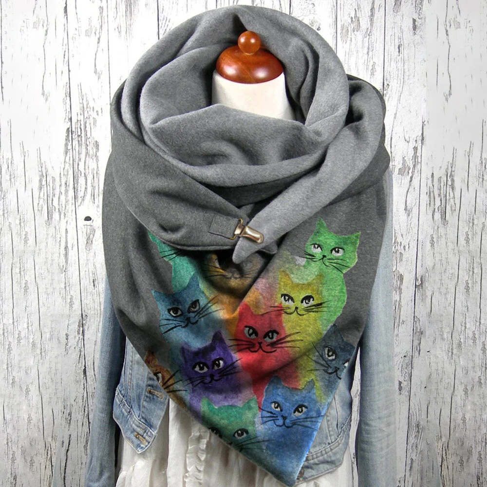 Pouze US$8.79, nakupujte Ženský barevný roztomilý potiskovaný šátek s motivem koček pro ochranu krku a udržení tepla na Banggood.com. Nakupujte módní scarf & shawl & square online.