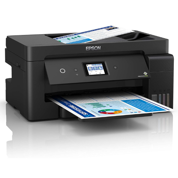 Key Features: Epson EcoTank L14150 A3+ Multifunction Printer – PrecisionCore, 4800×1200 DPI, Wi-Fi, A3+ print, A4 scan/copy/fax 4800 x 1200 dpi resolution Wi-Fi, Wi-Fi Direct, Ethernet Duplex printing, 250-sheet tray 7,500 black / 6,000 color yield Ultra-low-cost per page – Reduce ink costs by 90% Compact A3 printer – A3 + rear media feed and A4 print, copy, scan and fax Next generation ink filling system – Enjoy hassle and mess-free refills with the enhanced ink bottles Mobile printing and connectivity – Wi-Fi, Wi-Fi Direct, Ethernet & free mobile printing apps Designed for business – A4 250-sheet front tray, 35-sheet A4 ADF Duplex, 7,500 Page Yield