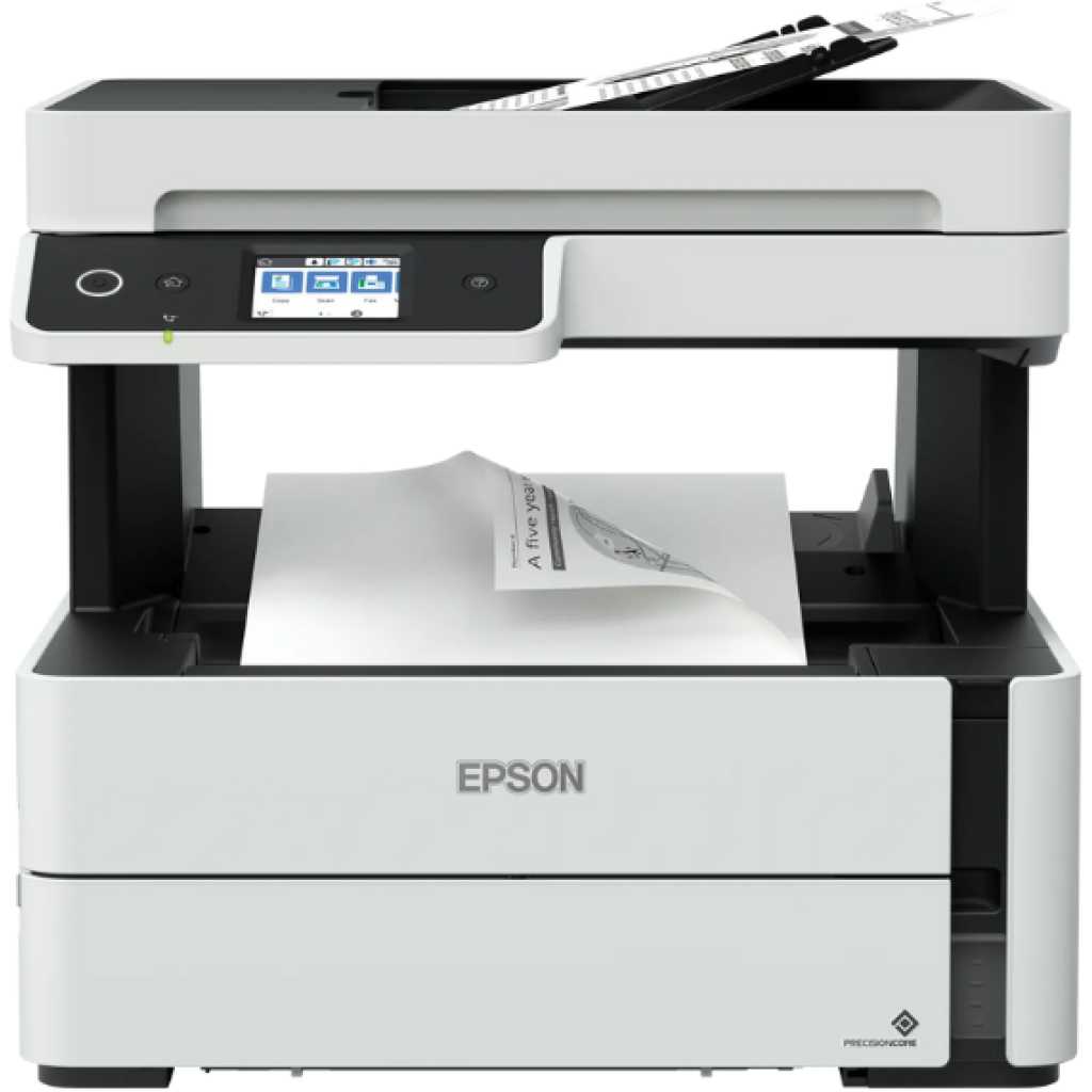 The Epson EcoTank M3140 Mono Ink Tank Printer is a powerful 4-in-1 multifunction printer designed for high-volume, cost-efficient monochrome printing. It combines printing, scanning, copying, and faxing in a compact and energy-efficient design, making it ideal for small businesses, home offices, and corporate environments that demand reliability and performance. PrecisionCore Heat-Free Technology At the heart of the M3140 is Epson’s PrecisionCore Heat-Free Technology , which delivers laser-quality text output without the need for heat during the printing process. This not only reduces energy consumption but also enhances print speed and durability. The printer achieves up to 20 images per minute (ipm) for standard prints and up to 39 pages per minute (ppm) in draft mode. Ultra-Low Cost Per Page The EcoTank M3140 is engineered to slash printing costs. Each high-yield pigment ink bottle can print up to 6,000 pages , and the included starter bottles offer up to 11,000 pages combined. This results in a cost per page as low as 15 paise , making it significantly more economical than traditional laser printers. 4-in-1 Functionality with ADF and Fax This printer isn’t just about printing. It includes: Flatbed CIS scanner with 1200 x 2400 dpi resolution 35-sheet Automatic Document Feeder (ADF) for batch scanning and copying Fax capability with up to 100 speed dials and error correction mode Copy features including auto fit, reduction/enlargement (25–400%), and up to 99 copies Auto Duplex and Paper Handling The M3140 supports automatic double-sided printing at speeds of up to 9 ipm , helping reduce paper usage by up to 50%. The 250-sheet input tray and 100-sheet output tray support various media sizes including A4, Legal, Letter, and envelopes. Compact, Spill-Free Design The printer features a compact integrated tank design with a spill-free ink refill system . The 6.1cm color touch panel offers intuitive navigation and control, making it easy to manage print jobs and settings. Energy Efficient and Eco-Friendly Compared to mono laser printers, the M3140 consumes up to 95% less power , making it an environmentally responsible choice. It’s Energy Star® certified and designed to operate quietly and efficiently. Connectivity and Compatibility The printer supports USB 2.0 connectivity and is compatible with Windows and macOS platforms. It integrates seamlessly into most office environments and supports Epson’s software suite for enhanced productivity. Durability and Warranty Built for high-volume printing, the M3140 has a recommended monthly duty cycle of 5,000 pages and a maximum monthly volume of 20,000 pages . Technical Specifications Functions: Print, scan, copy, fax Printing Technology : PrecisionCore Heat-Free Nozzle Configuration : 400 x 2 nozzles black Minimum Ink Droplet Size : 2.8 pl Ink Type : Pigment-based black ink Print Resolution : 1200 x 2400 dpi Print Speed (ISO) : 20 ipm (mono) Max Print Speed : 39 ppm (draft) Duplex Print Speed : 9 ipm First Page Out Time : 6 sec (simplex), 13 sec (duplex) Copy Speed : Up to 17 ipm Copy Resolution : 600 x 600 dpi Max Copies : 99 Reduction/Enlargement : 25% – 400% Scanner Type : Flatbed CIS Scan Resolution : 1200 x 2400 dpi ADF Capacity : 35 sheets Fax Speed Dials : Up to 100 Fax Transmission Speed : Approx. 3 sec/page Connectivity : USB 2.0 LCD Display : 6.1 cm color touch panel Power Consumption : 13W (operating), 0.7W (sleep), 0.3W (off) Dimensions : 375 x 347 x 302 mm Weight : 6.4 kg Warranty : Up to 1 year Key Features: Functions: Print, scan, copy, fax Printing Technology : PrecisionCore Heat-Free Nozzle Configuration : 400 x 2 nozzles black Minimum Ink Droplet Size : 2.8 pl Ink Type : Pigment-based black ink Print Resolution : 1200 x 2400 dpi Print Speed (ISO) : 20 ipm (mono) Max Print Speed : 39 ppm (draft) Duplex Print Speed : 9 ipm First Page Out Time : 6 sec (simplex), 13 sec (duplex) Copy Speed : Up to 17 ipm Copy Resolution : 600 x 600 dpi Max Copies : 99 Reduction/Enlargement : 25% – 400% Scanner Type : Flatbed CIS Scan Resolution : 1200 x 2400 dpi ADF Capacity : 35 sheets Fax Speed Dials : Up to 100 Fax Transmission Speed : Approx. 3 sec/page Connectivity : USB 2.0 LCD Display : 6.1 cm color touch panel Power Consumption : 13W (operating), 0.7W (sleep), 0.3W (off) Dimensions : 375 x 347 x 302 mm Weight : 6.4 kg Warranty : Up to 1 year