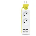 EU-stik rejsestrøm bærbar forlængelsesstrømledning med 4 USB-vægoplader Intelligent skrivebordsstik