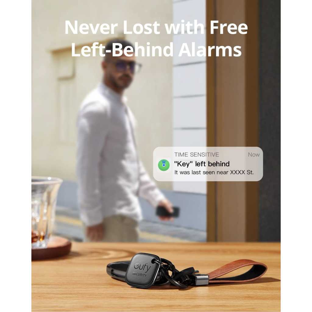 Key Features: Works with Apple Find My: Just use the pre-installed Find My app and add SmartTrack Link to the Items tab. You can then locate it anywhere in the world using Apple’s network of millions of devices. Note: Apple Find My features only work if used with an iOS, iPadOS, or macOS device. Free Left-Behind Alerts: Avoid losing your belongings in the first place with instant left-behind alerts via the Apple Find My app—with no added fee. Find Your Phone in Silent Mode: Avoid tearing up your apartment searching for your phone. With just a double tap, your phone rings—even in silent mode.The function only works with the eufy Security app. Always Linked to Your Item: If something’s lost, you’re always connected via Link’s QR code. A person who finds your item can scan and see only the contact information you share.The function only works with the eufy Security app. Share with Friends and Family: With the eufy Security app you can let others know the location of your items too. You Can’t Miss the Alarm: Link sounds an alarm so loud, you can hear it if it’s covered or in the next room. Water Resistant with a Replaceable CR2032 Battery: Link is safe—even if it’s left in the rain—with its water-resistant coating. And it comes with a replaceable battery that lasts up to a year.