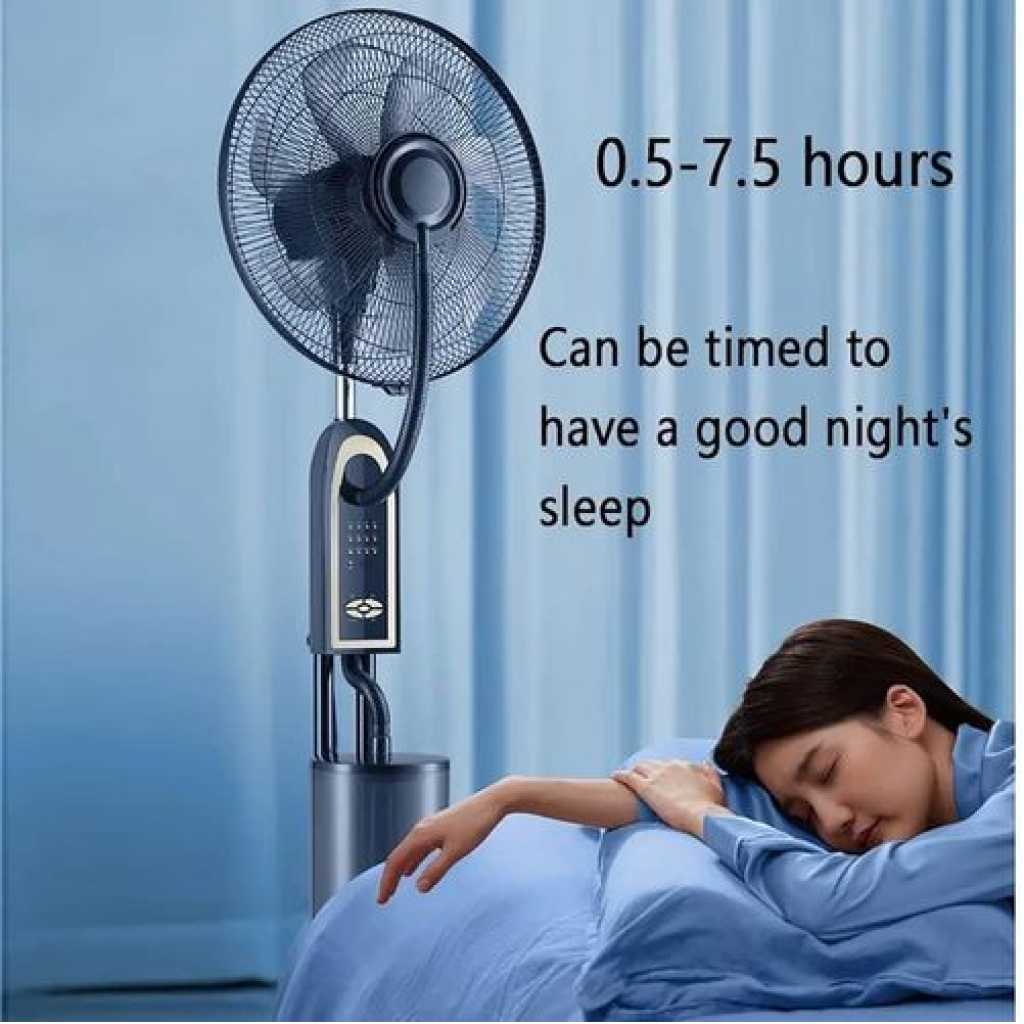 Welcome to my store! Our misting fan is a product that utilizes water to cool down by taking away heat from the surrounding environment when it evaporates. It is suitable for factories, outdoor restaurants, residential courtyards, medium-sized offices, exhibition halls, clubs, home shopping malls, electronic entertainment facilities, Internet cafes, commercial facilities, gymnasiums, and sports facilities. product name:spray fan Wind speed range:3rd gear wind speed operate:Button+remote 6-meter remote control frequency:50Hz-60Hz rated power:75W Water tank capacity: 4L Maximum fog for up to 19 hours Fan blades: 5 Timed: 7.5 hours Base: Universal wheel moves 360 degrees Power cord length: 1.7 m Main functions: cooling, humidification, ventilation. 1. Portable spray fan: 3 wind speeds, 4L large capacity water tank, spraying delicate water mist, quickly evaporate and take away the heat to cool down, goodbye to dry air, will not hit the wet floor 5.Scope of application: used in hotels, restaurants, cafes, public places, stadiums, outdoor dining, greenhouse cultivation, livestock farms, farms and other green and dry areas. 4. Standing fan: 1.7m power cord, the bottom with universal wheels, suitable for a variety of scenes and easy to move; can be timed 0.5-7.5 hours 2. Oscillating fan: 5-piece fan, strong wind, oscillating can make the fan for a large area to provide ventilation, blowing air to the whole area, with spray function, can also increase humidity, keep comfortable. 3. Floor fan: within 6 meters can be controlled from a distance using a remote control, practical and convenient; lying in bed can be easily controlled