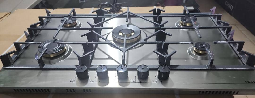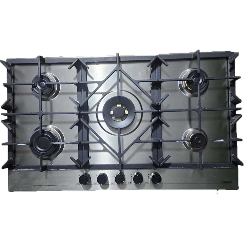 Key Features: FIESTA 90×60 Built-in Gas Hob, 5-Gas Burners, Auto Ignition, Cast Iron Pan Supports, Euro Pool Gas Burners – Stainless Steel. 90x60cm Gas Hob 5- Gas Burners Auto Ignition Cast Iron Pan Supports Euro Pool Burners
