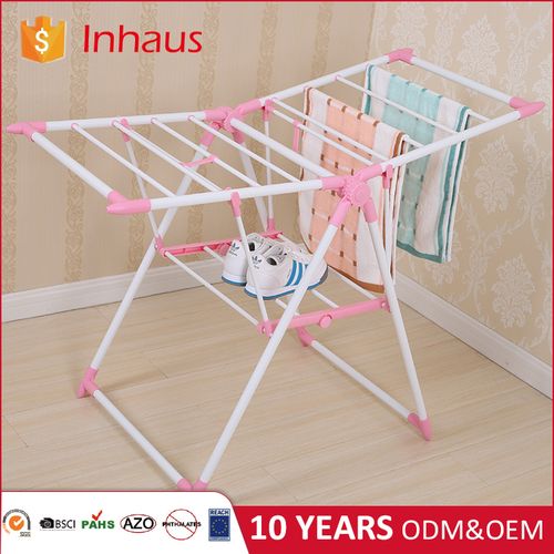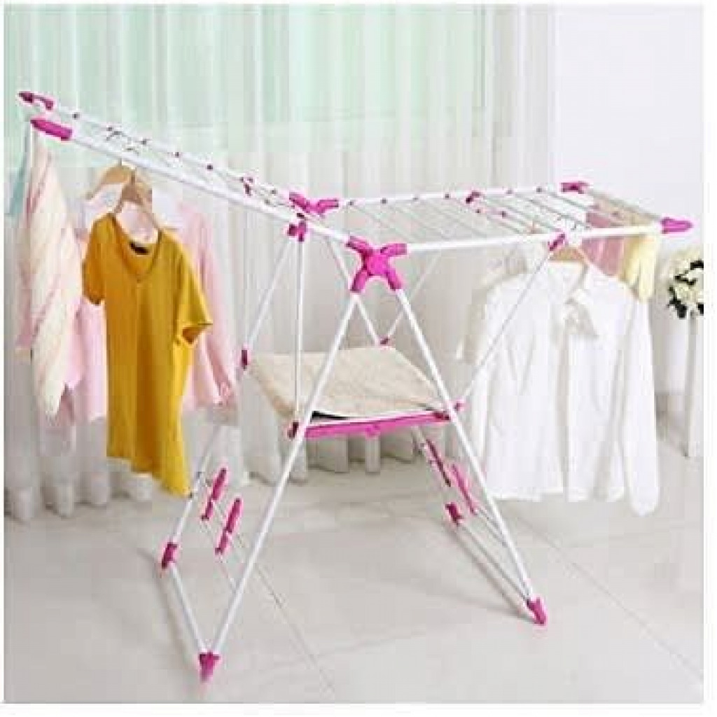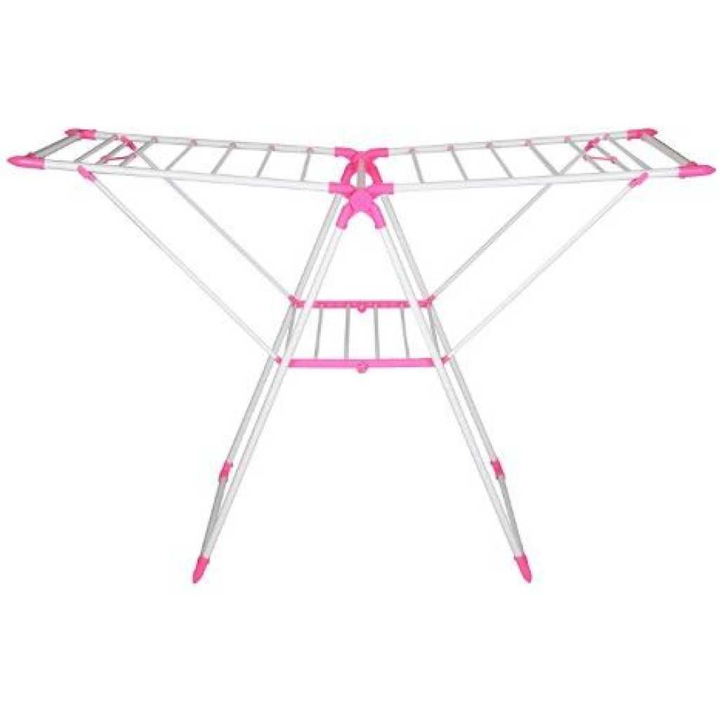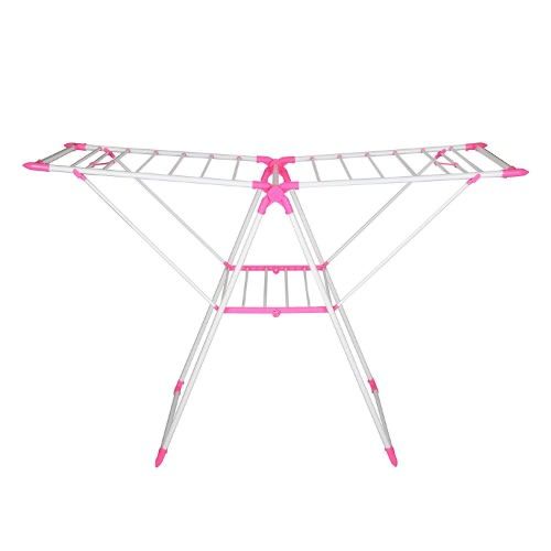 Key Features: Stainless steel Open size: 137L x 60W x 93H cm Compact storage Unfolds very easily Suitable for outdoor or indoor drying Thickening material Color :Pink. Anti-skid rubber feetCorner radian safety design