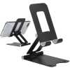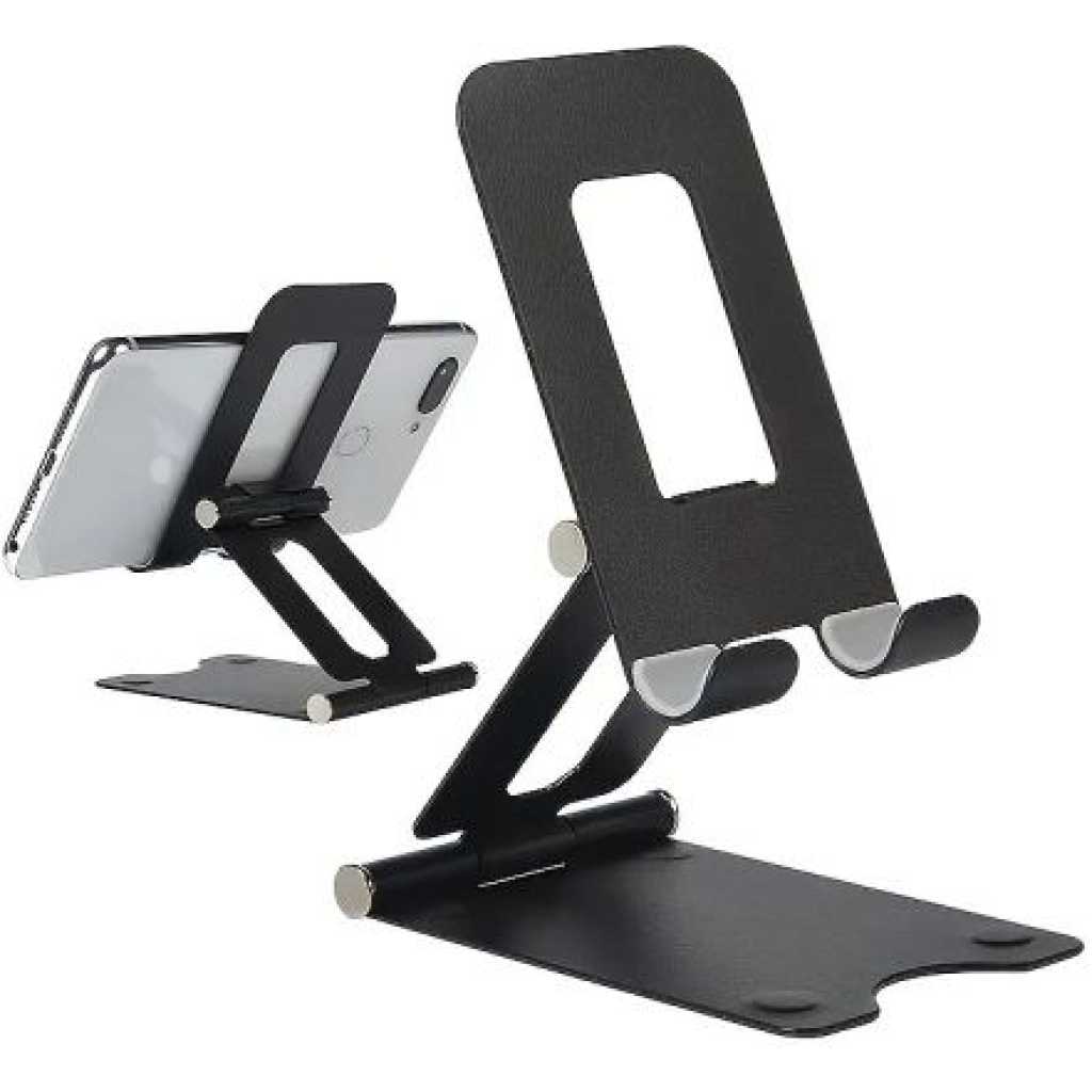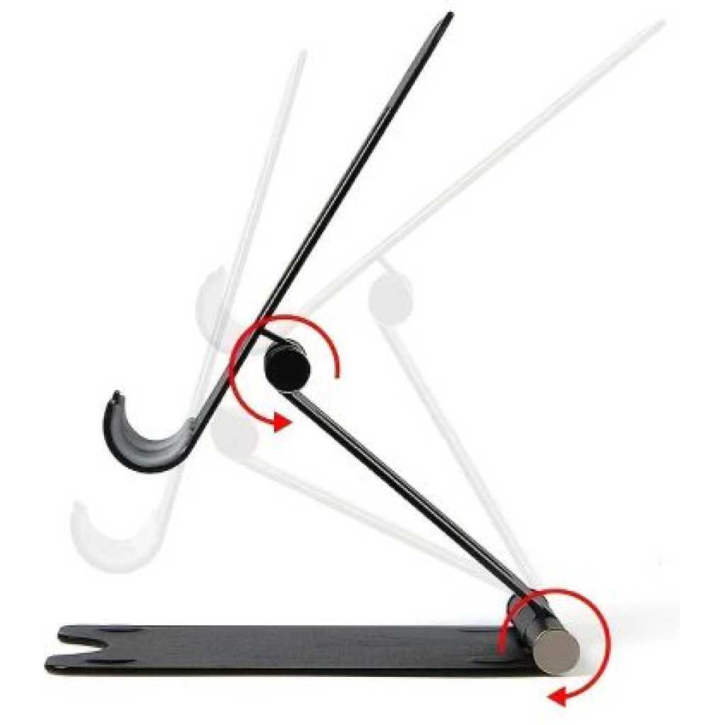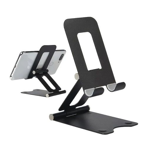 Key Features: Foldable Rotating Metallic Desktop Phone Stand Tablet Display – Black. Wide Compatibility: The phone holder stand applies to all 4 -10 inch smartphones and e-readers, such as Nintendo Note 9 8 6, iPad mini/pro / Air, Samsung Tab, and Google Nexus. The hook width of the stand is 12mm, please make sure the thickness of your device is no more than 12mm (0.5 in) Hands-free & Good-looking: This Aluminium phone stands frees your hands while watching videos, playing games, listening to music, making a phone call, viewing recipes, and using Facetime and YouTube. It looks very stylish and sleek, which is a perfect accessory for your desk/nightstand while at home & traveling, For a tablet larger than 8 inches, setting it in landscape mode will provide more stability Adjustable & Portable: While reading, adjust the device up or down for the most comfortable height or angle. Allows you to play and charge simultaneously. It’s very portable and can be folded easily to store it away Solid & Protective: Made of high-quality premium aluminum, it’s very sturdy and stable to use. Rubber pads and feet can protect your device from scratches and sliding Ergonomic Design: Easy to watch videos and play games Universal design fits all kinds of phones and tablets