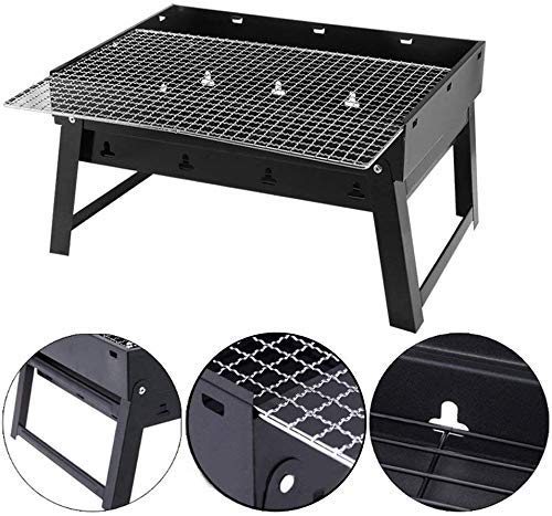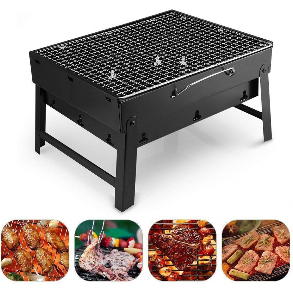 Key Features: Material: Carbon Steel, Color: Black Package Contents: 1-Piece Barbecue Grill 1 carry handle, charcoal based Equipped with blow slots for extra heat producing Measurement: 44 cm x 29 cm x 23 cm
