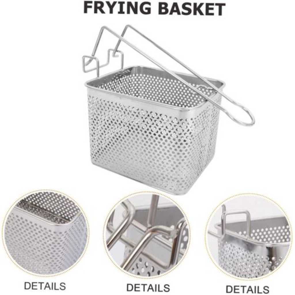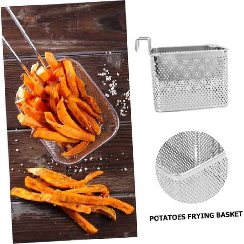 1 x frying basket Features -Color: Silver Frying Basket Strainer -Material: Stainless steel Stainless Steel Fry Basket – Size: 20.00X14.00X15.00cm;/7.86X5.50X5 Deep Fry Basket Strainer. Goods Information french fries basket This basket can be widely for frying many foods, and practical.stainless steel frying basket This frying basket is made of stainless steel material, safe and durable, and use, washable and reusable.chips frying strainer The basket can dive right into the fryer and create something delicious