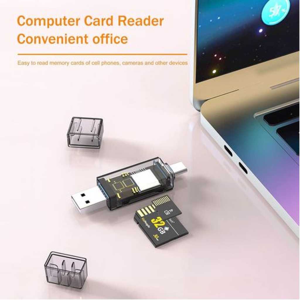 GD-DK006 Type-C & USB-A Output 4 in 1 OTG Memory Card Reader USB SD Card Reader for PC, Micro SD Card to USB Adapter, Transparent Housing Dual USB and USB-C Plug Micro USB & USB 2.0 – Supports SD/TF C