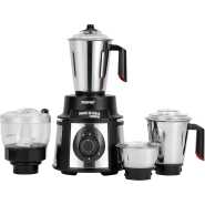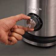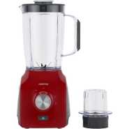 Geepas 2-in-1 blender. The blender comes with two jars one large plastic blender jar and a small plastic grinding mill jar. This transparent jar has a capacity of 1.6 liters. The two jars are highly durable and resistant to corrosion. The high-performance stainless steel blades and a powerful motor even grind hard ingredients to the desired consistency while cutting through hard ingredients with ease. The blender is used to make milkshakes, fruit juices, and smoothies, and the small grinder attachment grinds nuts, coffee beans, seeds, and so on. The 2-in-1 blender is made of durable, food-grade material with leak-proof lids and a rust-free body. The transparent body allows you to monitor the process inside without opening the lid frequently. The new and sturdy 650-watt motor is long-lasting and high-performing, allowing for continuous grinding of even the toughest ingredients. Thus, operating this blender becomes convenient. Easily regulate the speed as per your preferences with the chrome-plated control panel with 2-speed and pulse settings. Lightweight, ergonomic, and strong handles give a comfortable grip and make it easy to handle. An elegant 2-in-1 blender in maroon with a modern design enhances the look of your kitchen countertop. It comes with a 2-year manufacturer’s warranty.