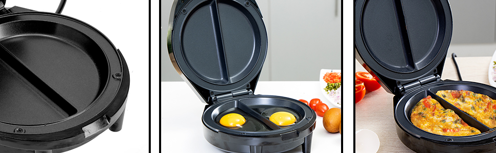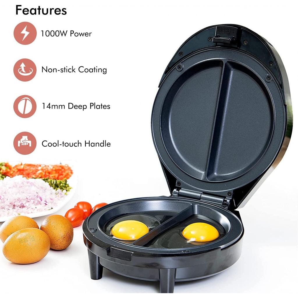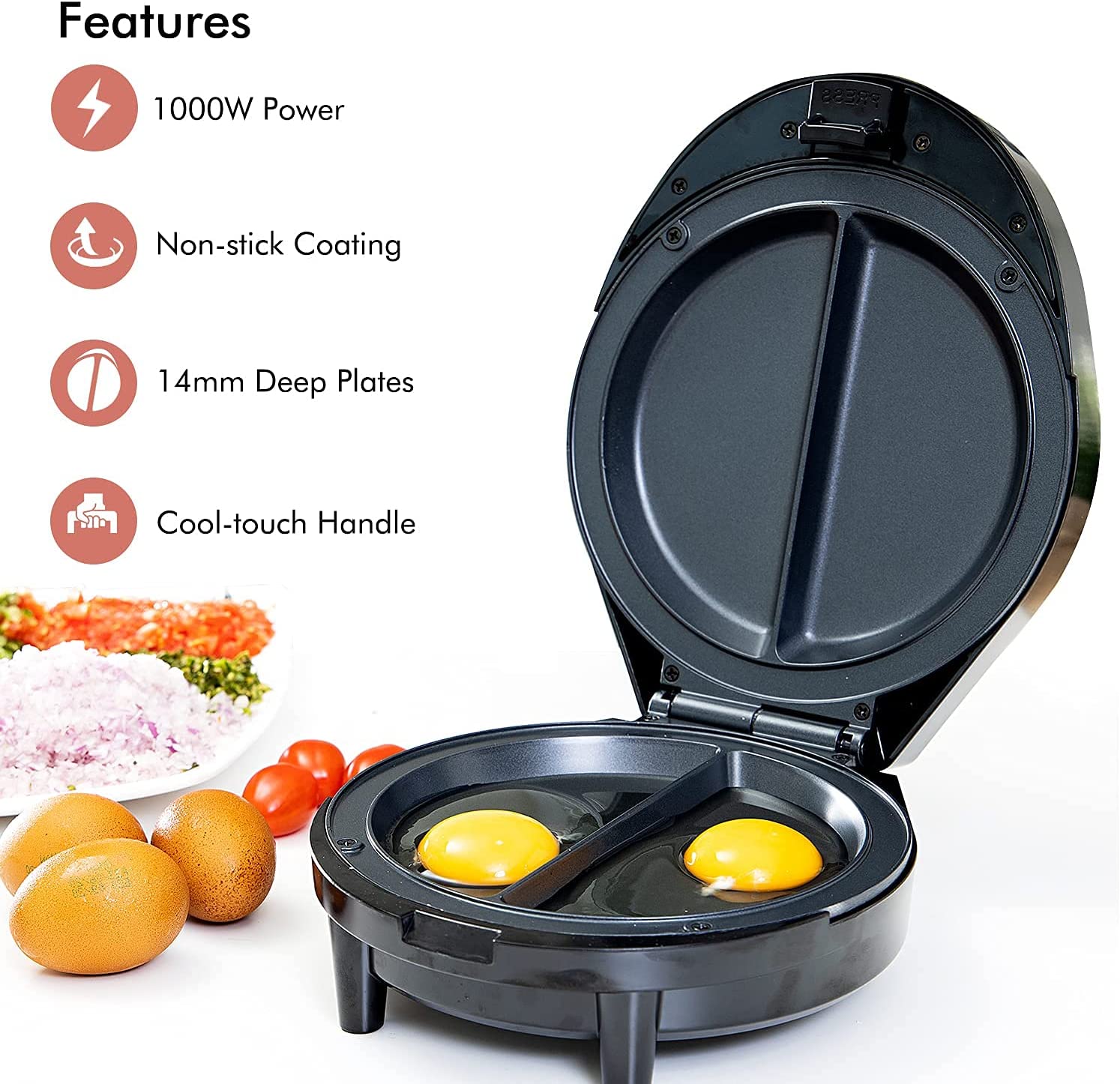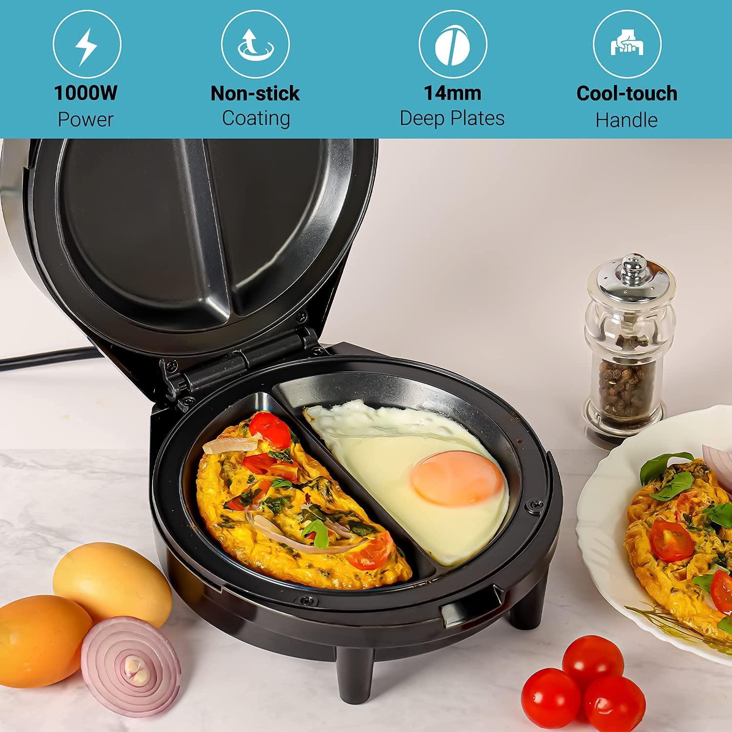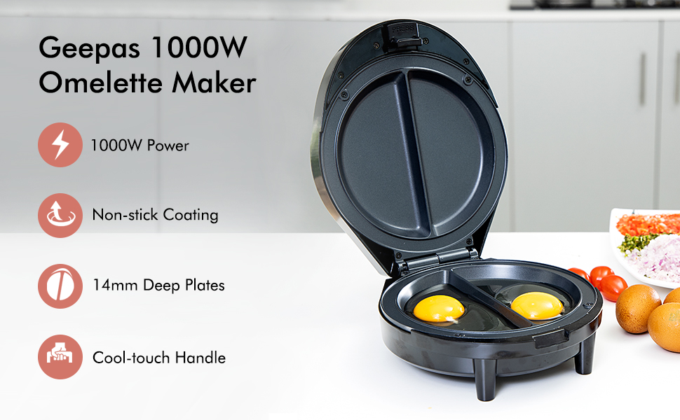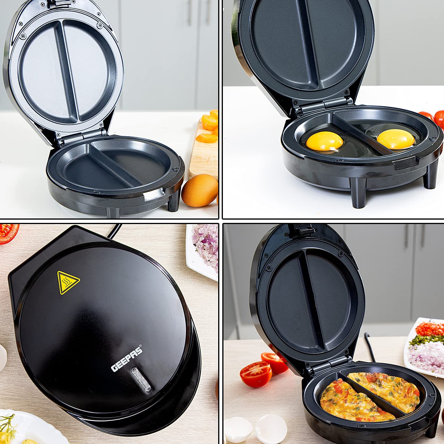 Geepas 1000W Omelette Maker | Dual Electric Non-Stick Egg Cooker | Automatic Temperature Control & Power Light Multi Cooker for Omelettes, Fried, Poached & Scrambled Eggs | Cool Touch, 2 Year Warranty – GOM36535