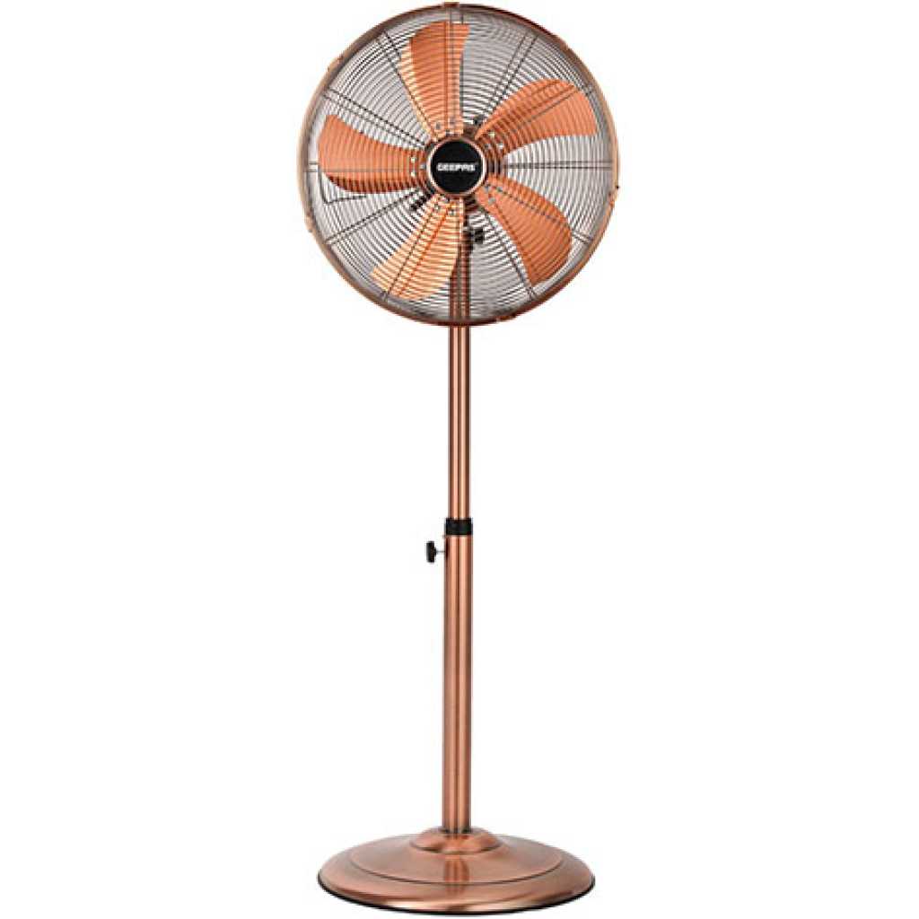 Key Features: This Geepas 16″ Metal Stand Fan has 4 pcs aluminum blades, metal chrome grill and a metal round base 4 Pcs BLADE WIDESPREAD OSCILLATION – This Geepas fan head moves from side to side to blow air throughout the area. This 5 blades will provide ventilation for a wide area Adjustable Height & Tilt-back Head – Gives you the ability to direct the cooling air right where you need it. The fan’s stand or pedestal adjusts up or down changing the fan’s height while the tilt-back head lets you aim the air towards the floor, ceiling, or anywhere in between 3 Quiet, Energy-Efficient Speeds – Allows this free-standing pedestal to provide a cooling breeze around the home or home office. Ideal for the bedroom, living room, or near your desk. Low, medium and high speed make this well suited around the whole house