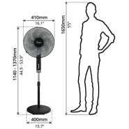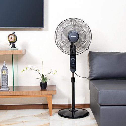 1.Tilt-back fan head – Create the comfort you desire with the tilt-back fan head feature on geepas standing fan. Pivot the fan head towards the ceiling or floor to circulate air efficiently throughout your space and boost the effectiveness of air conditioning in the summer and heat in the winter. 2.Telescopic Height Adjuster – Set the height of the fan just how you like it. The 16″” Fan telescopic height adjuster is easy- to- use and stays set at your desired height level. This fan adjusts perfectly for your requirements. 3.Widespread oscillation – Widespread oscillation quickly provides cooling airflow and comfort throughout the room. Easily turn the 90 degree oscillation on or off with a switch at the rear of the fan or with the press of a button for oscillation mode. 4. Remote Control & Auto Shut-Off – Change speed and mode and turn the fan on and off easily with the included remote control, which also controls an auto-timer and the oscillation. You can save energy by utilizing the fan’s automatic shut-off function after 7.5 hours. 5. SAFE OPERATION, LED DISPLAY – The high-speed stand fan blades are covered with a steel safety grill, and the grounded cord set meets requirements for home, office or industrial use. Easy to use controls with led display.