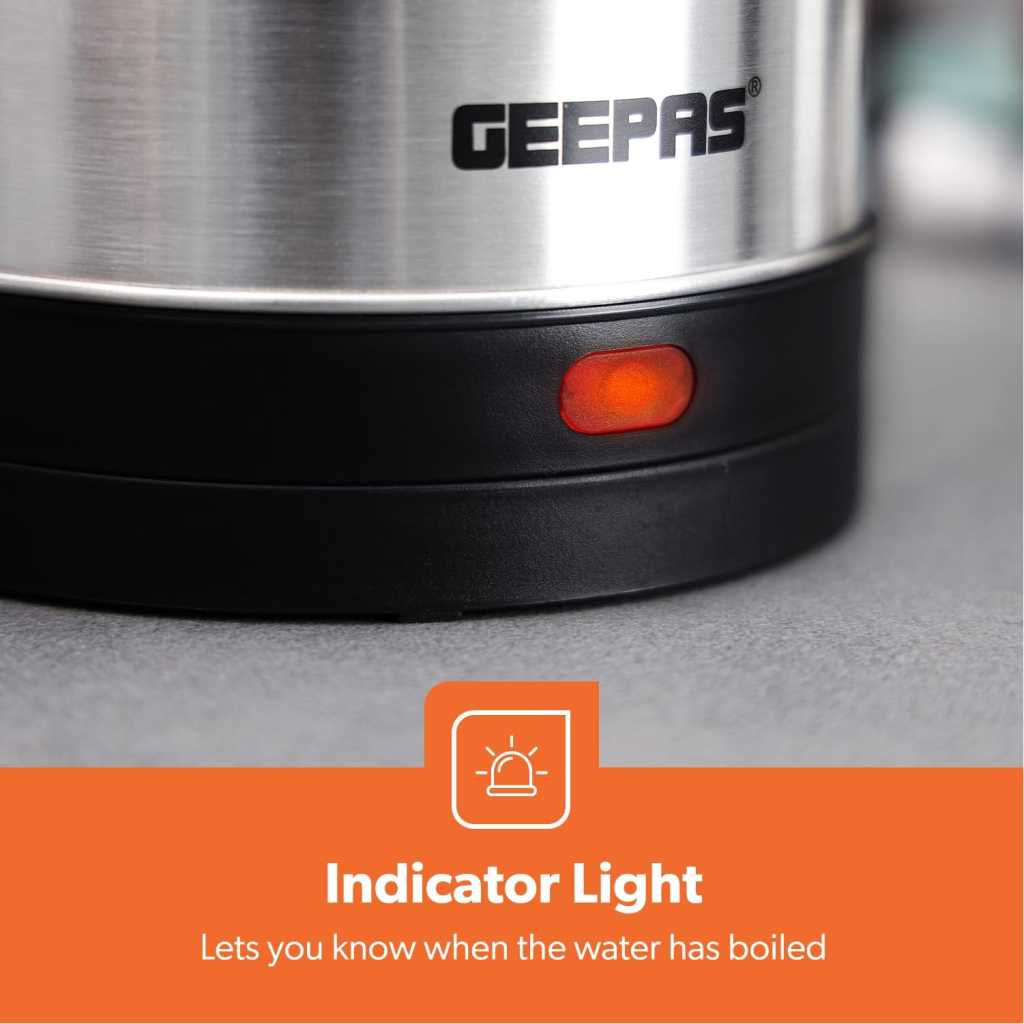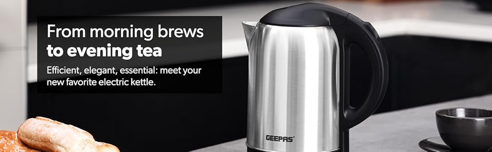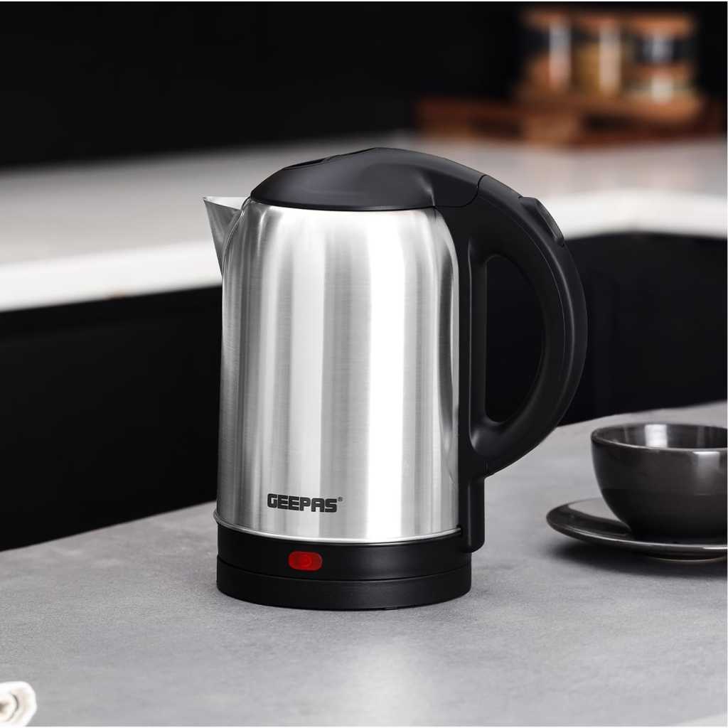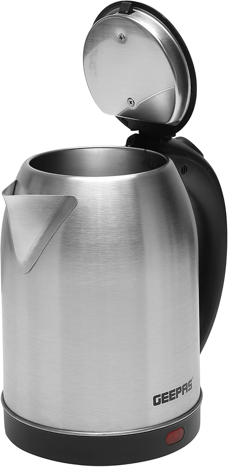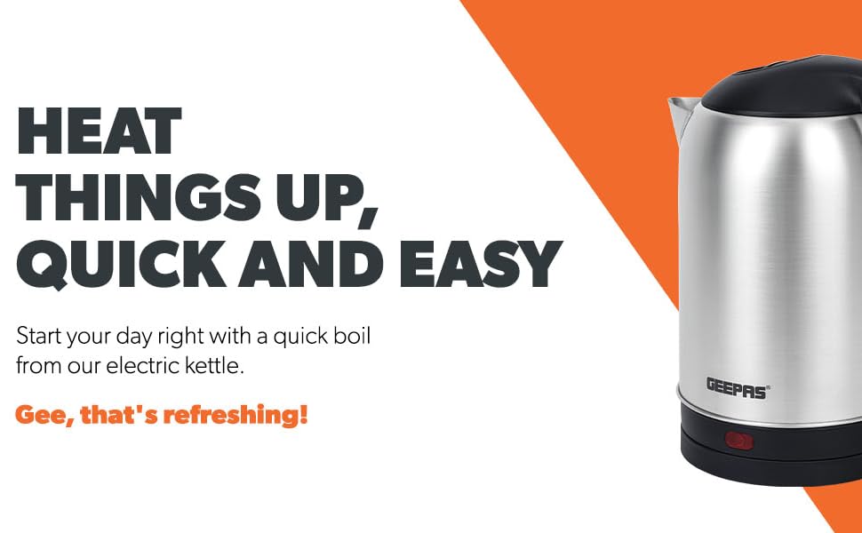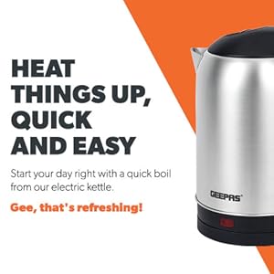 From the manufacturer GEEPAS 1500W ELECTRIC KETTLE Stainless Steel Cordless Kettle, 2L The Geepas Electric Stainless Steel Kettle provides you with a stylish design Textured Kettle combining a high gloss glass material for a rich feel meaning it will bring style to any kitchen worktop. Kettles and toasters form the perfect morning brunch. The large, 2-liter capacity means you’ll have plenty of hot water for any large family or team or work colleagues. Filling the large kettle is also easy thanks to the flip-top lid that opens through 90 degrees. It is a 1800-watt kettle that boils quickly and quietly, even when it is at full capacity. The base makes sure it’s sturdy enough to last long. The whole kettle was made by safety materials making it Stylish and practical. To help keep your kitchen clean, the spout has been designed for easy accurate pouring. Almost everyone has had those moments when you put up water or some other liquid for boiling and then forget to take it off. Then you smell something burning only to find the liquid dried up and the poor pot burning.