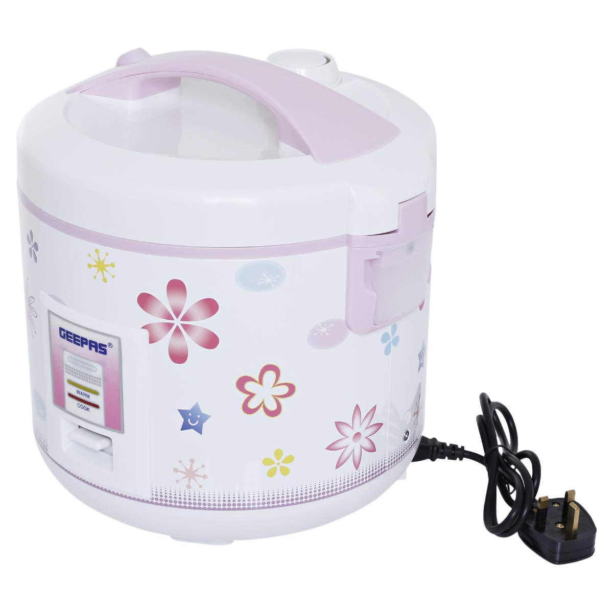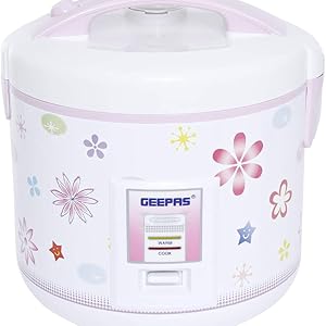 Key Features: Brand: Geepas Model Number: GRC4331 Uncooked Capacity: 3.2 Liter Automatic Keep Warm: Yes Non-Stick Coating: Yes Glass Lid: No Color: White Material: Plastic Shipping Weight: 6.5 kgs Included Accessories: Steamer, Measuring Cup and Spoon