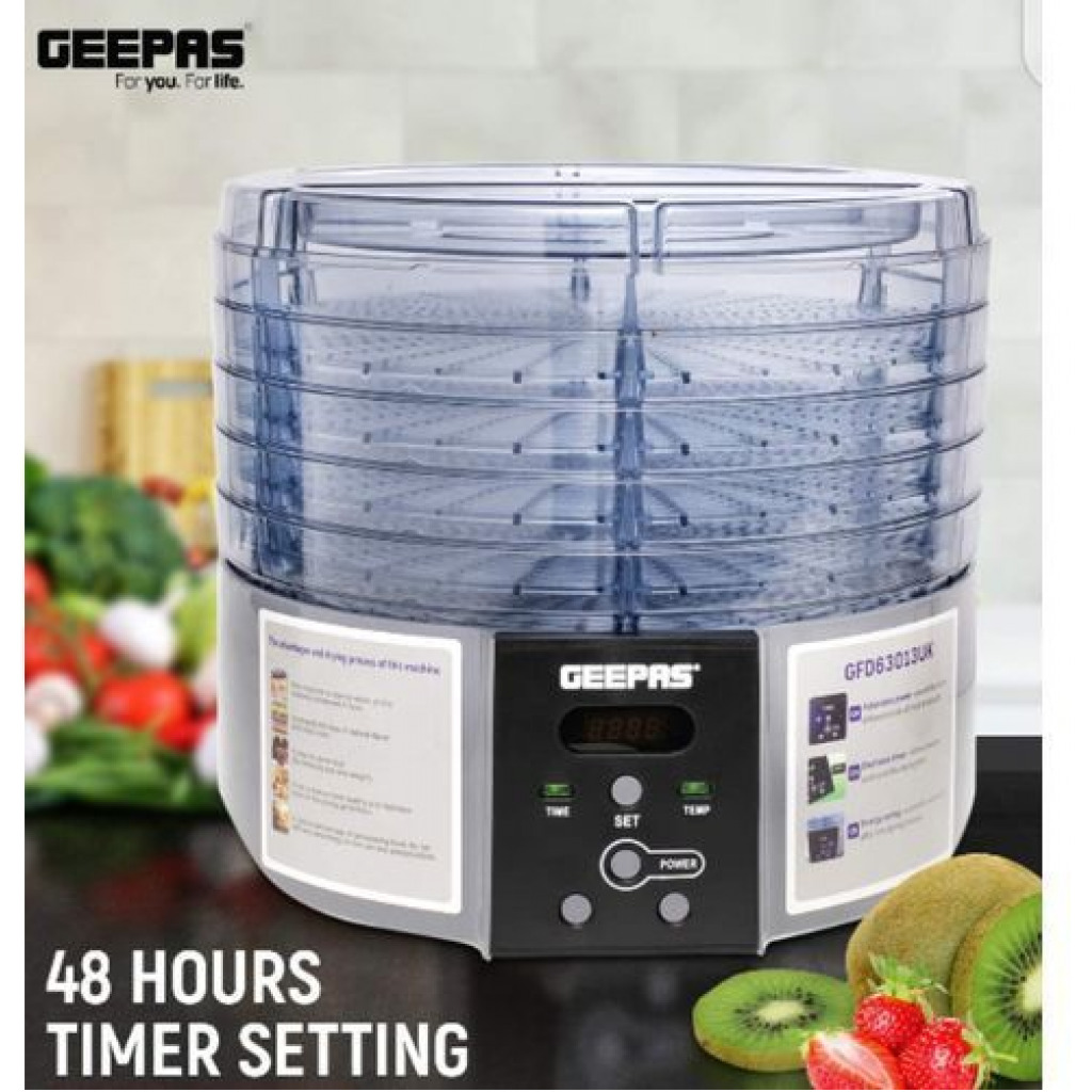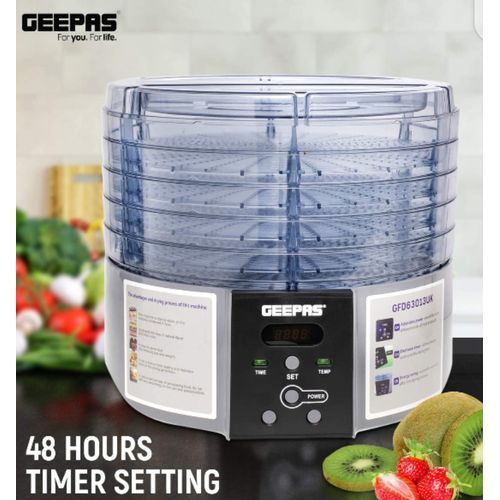 GEEPAS FOOD DEHYDRATOR. This digital food dehydrator features five layers from top to bottom. These spacious trays give more space and let you preserve 5 different types of items at a time. Now you can keep all your snacks fresh and ready for use. Stackable tray of fruit dryer allows you stack layers at different heights, you can stack trays based on the number of foods. Food dehydrator is very easy and fast to make delicious healthy and natural snacks like banana chips, fruit roll ups, dried fruit, dried chili and beef jerky. If there are children or pets in your home, this digital food dehydrator is your best choice. This method is safer and healthier as compared to store-bought snacks packed with sugar.