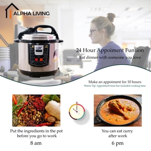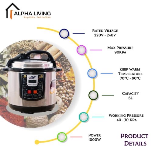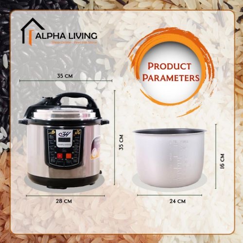 Key Features: Multi Function Automatic Cook One touch preset buttons/Automatic. Safe Lock Lid with Steam release/ Non stick Inner Pot. Replaces six common devices: Slow cooker, Canner, Soup Maker, Steamer, Cookware and Rice Cooker. Alumnium inner pot.