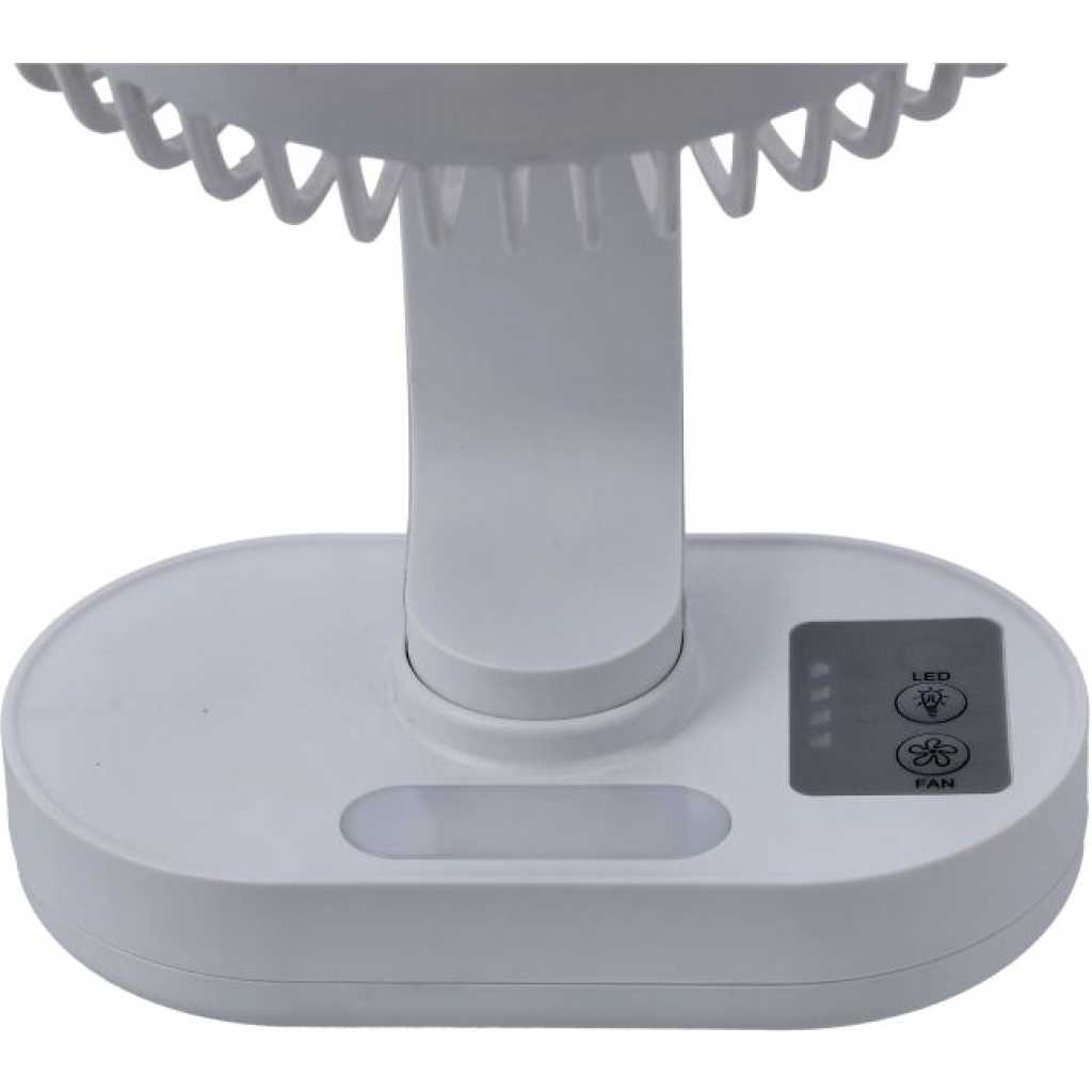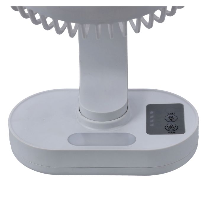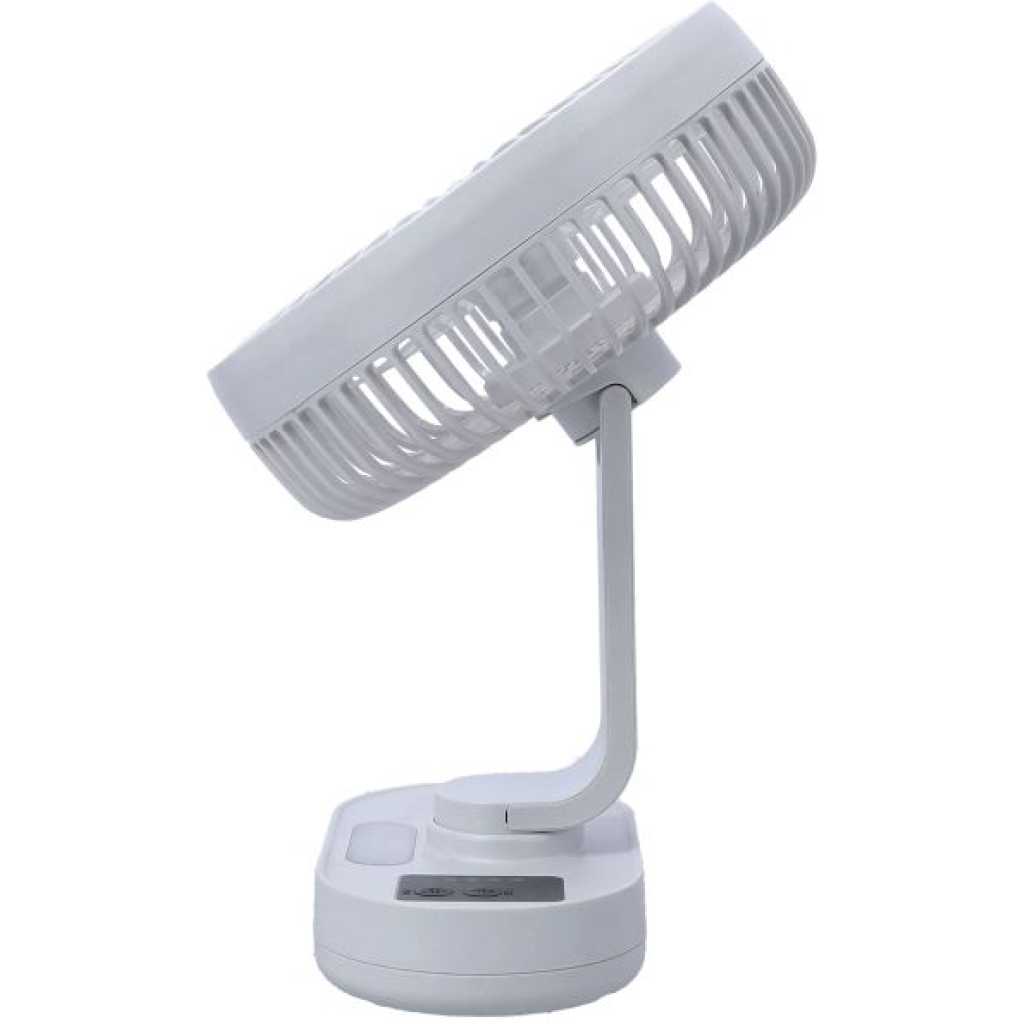 Geepas 8-inch Rechargeable Fan with Night Light, GF21157. The Geepas GF21157 8-inch Rechargeable Fan with Night Light is a compact and efficient cooling solution, perfect for both home and office use. This fan is designed to provide powerful airflow with its 3 precision-engineered ABS blades and 3 speed settings . Rechargeable Battery : Equipped with a high-capacity 2×3.7V lithium battery, it offers up to 9 hours of continuous operation on a single charge. LED Night Light : Features an LED light with a color temperature of 6500K (daylight), providing up to 20 hours of illumination. Adjustable Head : The fan head can be easily adjusted to direct airflow where needed. Portable Design : Lightweight and portable with a high grip base, making it easy to move around. Quiet Operation : The upgraded electric motor ensures quiet yet powerful performance. Safety Features : Includes a safety grill to protect the blades and users.