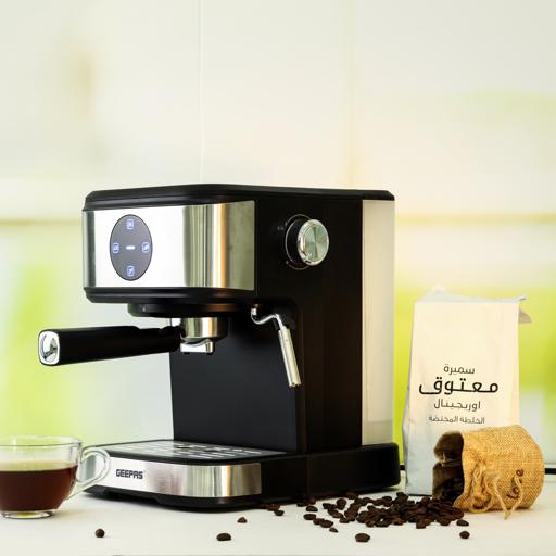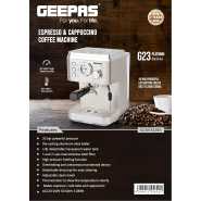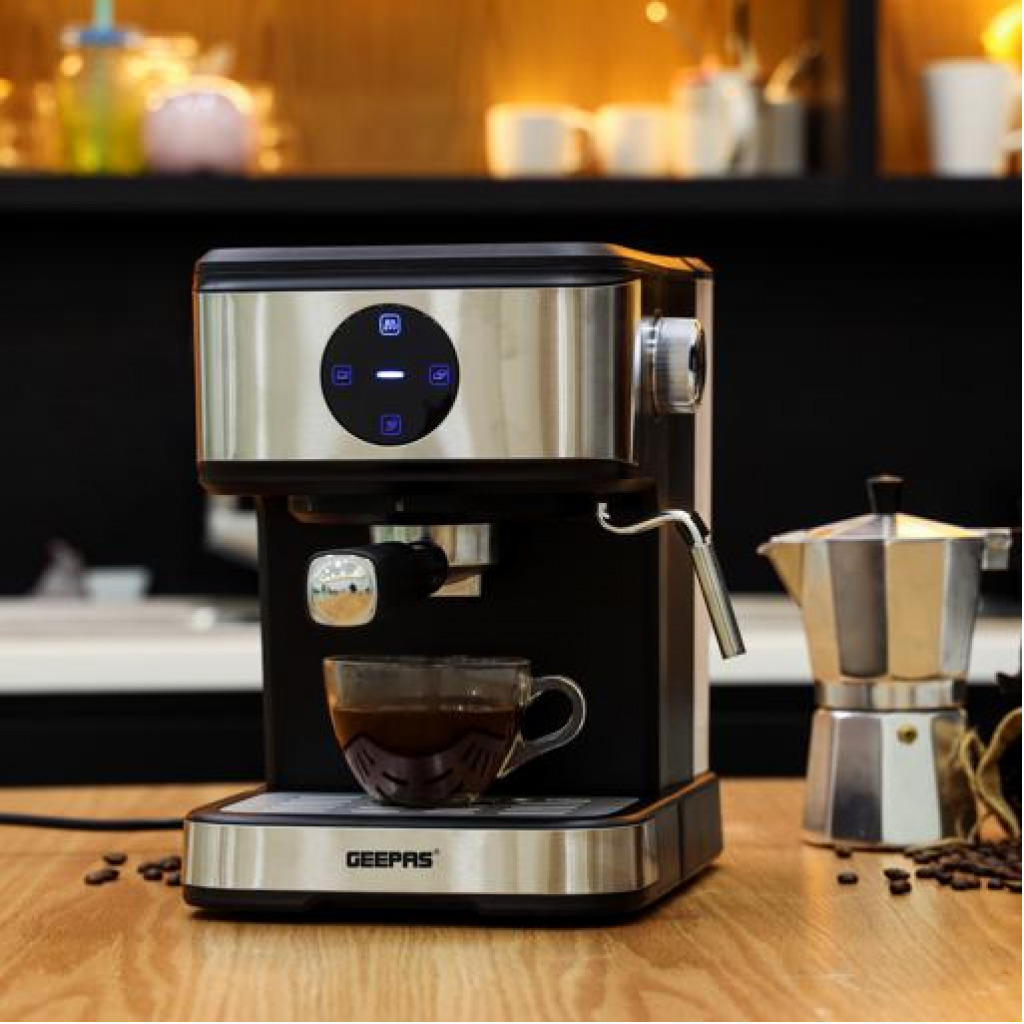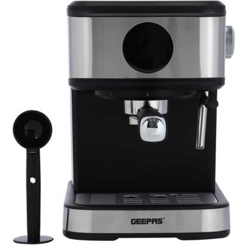 TWO CUPS BREWING - Always brew espresso at the perfect temperature with two separate thermostats, which allow for water and steam pressure to be controlled separately. 2 stainless steel durable filter with holder for ground coffee and ejects with a double floor system for 1 or 2 cups at a time.SAFE PROTECTION SYSTEM - The machine will automatically power off after few minutes, automatic pressure relief protection to avoid water leakage, and overheat protection to prevent dry burning. (Operating tips: 2 cups of 60ml, 140g powder, please do not put too much coffee powder and the powder should be finely ground.)20 BAR ENSURE THE RICH FLAVORS - Geepas Digital Coffee Maker or Espresso Machine, 20 bar professional pump, with 850W powerful pressure to extract coffee, which makes the coffee can release the best flavors. It is easy to form beautiful coffee crema and a smooth taste.SLEEK SPACE-SAVING DESIGN, CONVENIENT WATER TANK - With a sleek profile, compact design and narrow footprint, each model fits beautifully on a kitchen countertop – without taking up too much space. The 1.5L water tank is simple to remove, refill and reattach, and the water level is easily visible to eliminate the guesswork.PERFECT COFFEE TEMPEATURE – This Professional Coffee Machine is built with powerful thermo-block heating system, ensures perfect temperature of espresso from the first cup. Fast heating up, only few seconds for espresso enjoyment without waiting.INCLUDED 2 YEARS OF MANUFACTURER WARRANTY.