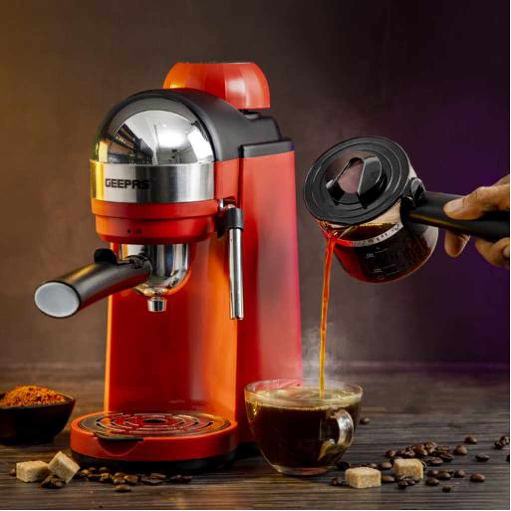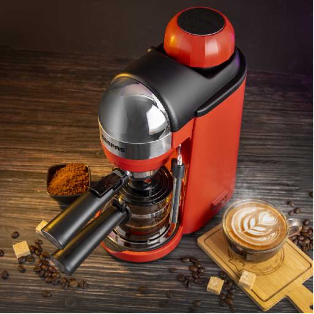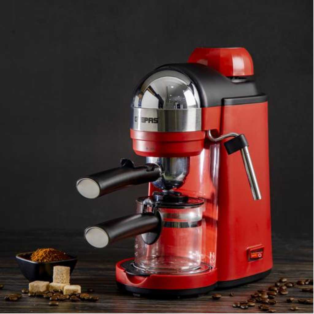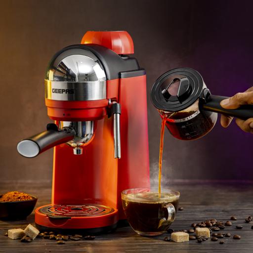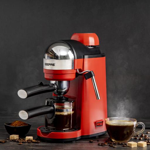 Geepas Espresso Coffee Maker, 240ml Capacity, SS Filter, GCM41513 | Stainless Steel Filter & Aluminum Die-Casting Filter Holder | 5 Bar High Pressure | On/Off Light Indicator. Capacity: 0.24LCoffee options: Espresso, Cappuccino, and LatteRemovable and washable drip tray. S/S filter and aluminium die-casting filter holderON/OFF switch with indicator light; 5 bar aluminum die-casting boilerWith milk frothing function to make cappuccino With automatic pressure release protecting deviceOver-heat & over-pressure protecting device; With decoration plateAC 220-240V 50/60Hz 800W3 IN ONE ESPRESSO MACHINE FOR CAPPUCCINO - With automatic built-in milk frothing. Can be used as an espresso coffee machine, Cappuccino machine, and latte machine. Customize milk-based espresso. It is compatible with Nespresso, Coffee Pod, and Coffee powder.DIE-CAST ALUMINIUM ALLOY BOILER WITH 0.24 L WATER CAPACITY – High-quality durable boiler will give perfect taste and aroma to your coffee and you can make up to 4 cups of coffee and enjoy it with your family, friends, or colleagues. Comes with a large 0.24L water tank.ADJUSTABLE MILK FROTHING - The adjustable steam set controls the built-in steam wand to steam or heat milk. With an articulating dual hot water and steam wand. It will help you to prepare your favorite Espresso based drink.5 BAR HIGH-PRESSURE SYSTEM - 5 Bar high-pressure pump is essential for well-brewed espresso with a thick layer of crema. Provide the right amount of pressure for flavor extraction. Force a small amount of nearly boiling water through finely-ground coffee to make true espresso.PERMANENT FILTER - This Coffee machine allows you to wake up to fresh coffee every morning. Eliminate the need to buy costly paper filters as this coffee machine has a permanent filter that can be removed and washed, however filter paper can still be used if you prefer. Fewer refills, more savouring!OVERHEAT AND OVER PRESSURE SAFE - Here this coffee maker is user-friendly and safe as it prevents overheating and overpressure of your hot drink and turns off automatically once the coffee is ready.