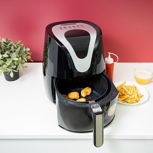 LARGE CAPACITY - Our large air fryer with 3.5 liters of cooking capacity so you can easily cook enough healthy low-fat food to feed a small family using little to no oil.TOUCHSCREEN LCD DISPLAY, DOUBLE PROTECTION – It has a touchscreen LCD display that lets you set the timer and temperature and also tells the progress of the food being fried. It has double protection layers for ensuring safety. Cook various food items in it including but not limited to fries, chicken, sausages, gammon, and moreNON-STICK BASKET WITH LFGB & FDA – This air fryer has a large capacity basket. The basket is made entirely from non-stick material and is gentle on the food. It is LFGB, and FDA passed and safe for your health.OVERHEATING PROTECTION WITH AUTOMATIC SAFETY SHUT DOWN - With automatic overheating protection and a safety shut-down, you'll never again have to worry about hazards in the kitchen, as you can simply set the timer and forget about it until the cooking is complete.7 PROGRAMS - Just tap the display to select a preset cooking mode and then the air fryer nearly instantly cooks any meal at the perfect preset time and temperature. Quickly and easily, make your favorite comfort food such as French fries, cake, pizza, mixed vegetables, chicken, steak, shrimp, and fish.2 YEARS WARRANTY & ADVANCED SAFETY FEATURES - This Geepas digital air cooker with inbuilt over-heat protection and auto-off sensors, so you can cook completely worry-free