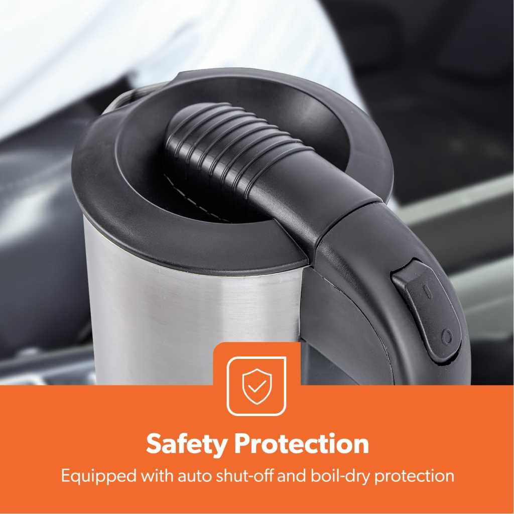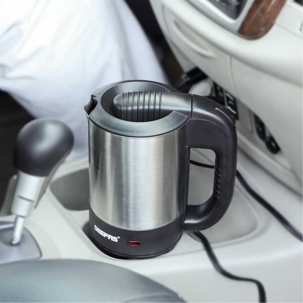 Key Features: Geepas GK38041 12V Stainless Steel Car Kettle- Water Heater for Caravans- 500ml- Stainless-Steel Electric Car Kettle with Cigarette Lighter Charger | Quick Hot Water, Coffee, Tea. TRAVEL READY HOT WATER CAR KETTLE: 12V electric kettle is ideal for travel, and use when camping, caravanning, and in cars, vans, trucks, and boats. Whether it is covering long distances to reach the office or a vacation destination, a hot cup of tea/coffee is an on-the-go luxury. CAPACITY 500ML, THE PERFECT BREW – The capacity is 500ML, which will be a good size for making multiple cups of tea or coffee. To make pouring comfortable and easy, the kettle features an ergonomic handle. Make your perfect brew, for tea and coffee lovers. CONCEALED HEATING ELEMENT – The concealed heating element of this car kettle provides a more efficient boiling time and protects & preserves the interior of the kettle. Quick to heat perfect serve for 1 or 2 people. CIGARETTE LIGHTER DESIGN – The travel heating kettle plugs easily into standard cigarette lighter 12V sockets, which can be used comfortably in most cars, caravans, trailers, RVs, and motor homes