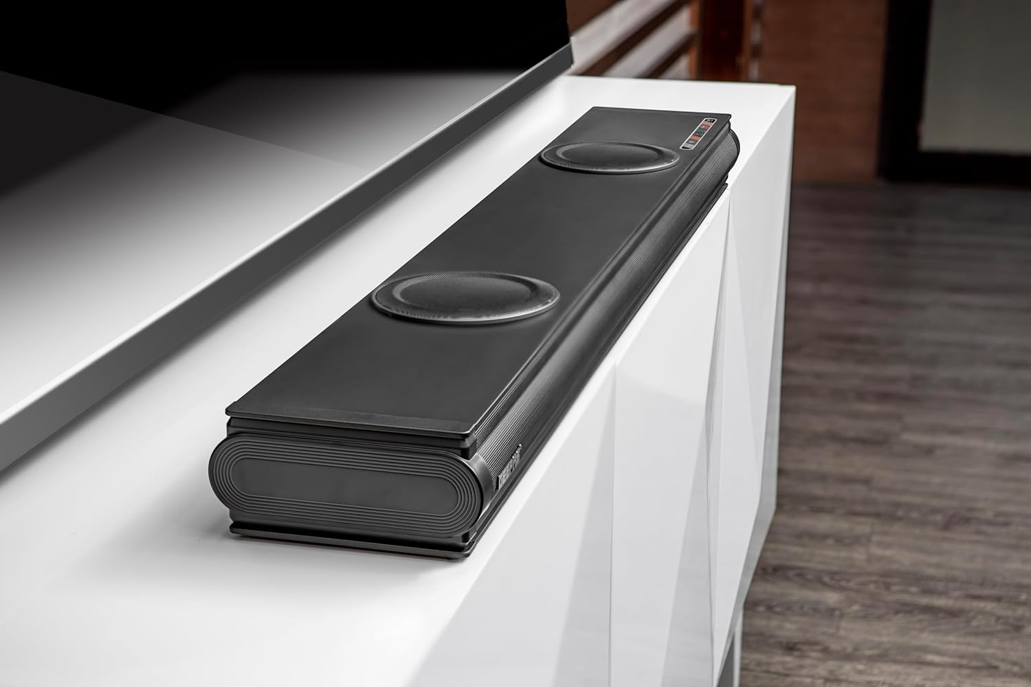 Key Features: Geepas GMS11152 Portable Sound bar System 2.2CH 2 Inbuilt Sub Woofer with 3D Sound Technology USB/AUX/BT/HDMI/Remote Included Connect to TV, Mobile, Laptop & More, Black. 2 POWERFUL SUBWOOFERS – This small and sleek sound bar is equipped with high output power and can be paired with your TV, laptop, pc, mobile and so on It creates a louder, more immersive listening experience than through your TV speakers alone It provides full- high audio quality, making bedrooms and compact spaces full of extensive stereo effects MULTIPLE CONNECTIVITY – The Sound bar supports 35mm (AUX&RCA) and optical wired audio input for use with mobile phones, tablets, TVs, computers, projectors, set-top boxes, etc Please make sure your TV audio setting to PCM for ARC/optical input before use After connecting the speaker to a laptop or mobile phone, sit on a comfortable sofa and enjoy high-quality music IMPROVE TV SOUND – Upgrade your sound quality in a smart way with this portable Geepas sound bar as it has built-in voice-enhancement technology which produces clear and quality sound effects to enjoy your favourite music, videos or while playing games It can be connected to the tv, mobile, laptop and other Bluetooth compatible devices EASY TO CONTROL FEATURES – The remote control adjusts the treble and bass intensity, switch the music or movie mode you need, meet your different scene, make your home magically become your private cinema, opera house, game hall Open the soundbar, attach the subwoofer enjoy your precious leisure time The LED screen will show the current function with ease