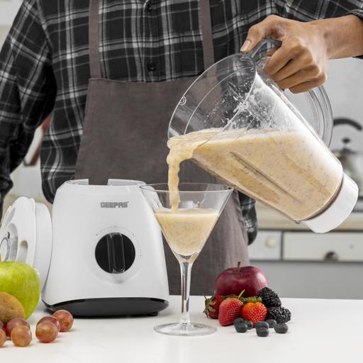 Geepas GSB9894 Multifunctional Blender – Stainless Steel Blades, 2 Speed Control with Pulse | 1.5L Jar, Interlock Protection | Ice Crusher & Smoothie Maker – 2 Year Warranty. Geepas 550W Multifunctional Blender ! Nowadays it is impossible to imagine any kitchen without a blender. It accelerates and simplifies what previously required so much effort and time. The Geepas multifunctional blenders can mix, and soya bean milkshake, smoothies, vegetables, fresh juices and these are not the last of its features from a whole list. Take a step towards healthy living; include juice in your daily routine. Powerful 550W motor and specially designed stainless steel blades, creating pulse, pause and blending patterns. Making blending fast and simple, the Geepas blender is ideal for the health-conscious to make homemade sports nutrition and protein shakes. The Body is made of high-quality plastic making it ideal choice which will last for longer and adds durability to the device. Cleaning is a breeze, just rinse under the tap or place in your dishwasher and that’s it, it’s clean. Perfect ice crushing, blending, chopping, pureeing, juicing and controlled processing!