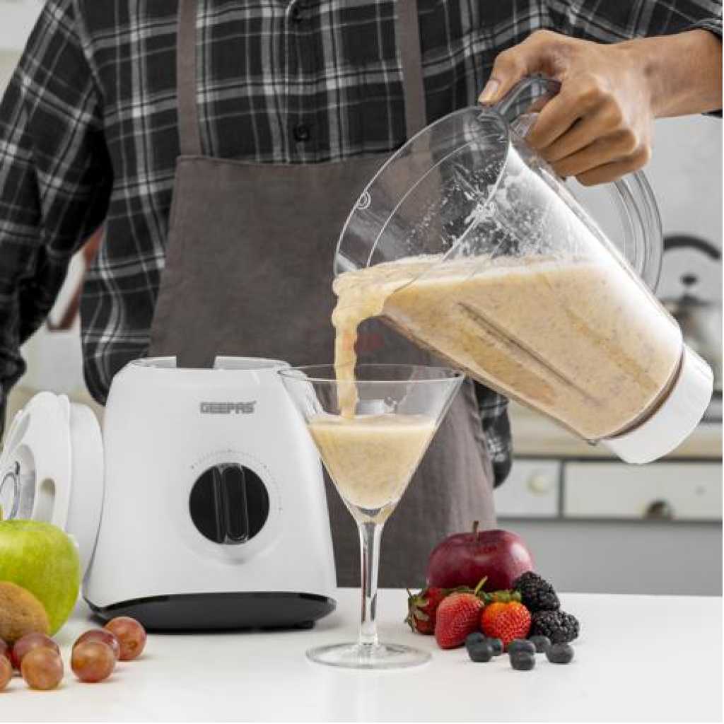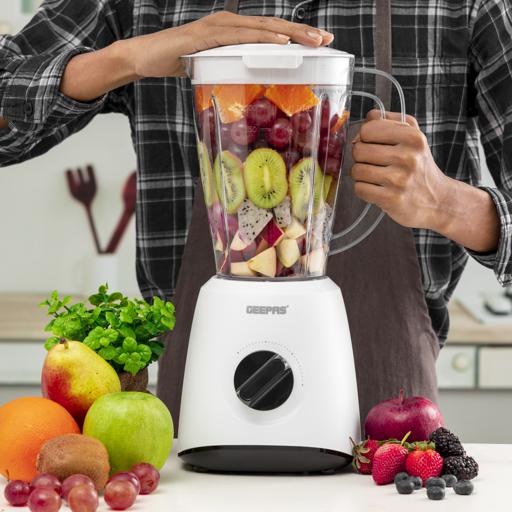 Key Features: Geepas GSB9894 Multifunctional Blender – Stainless Steel Blades, 2 Speed Control with Pulse | 1.5L Jar, Interlock Protection | Ice Crusher & Smoothie Maker – 2 Year Warranty. Speed Options: 2 Power (Watt) : 550W Stainless steel cutting blade Convenient and useful removable cap (measuring cup) for adding ingredients while the product is in use Jar Capacity (L) : 1.5L 550W powerful motor for more efficiency 2 speed + pulse for perfect control