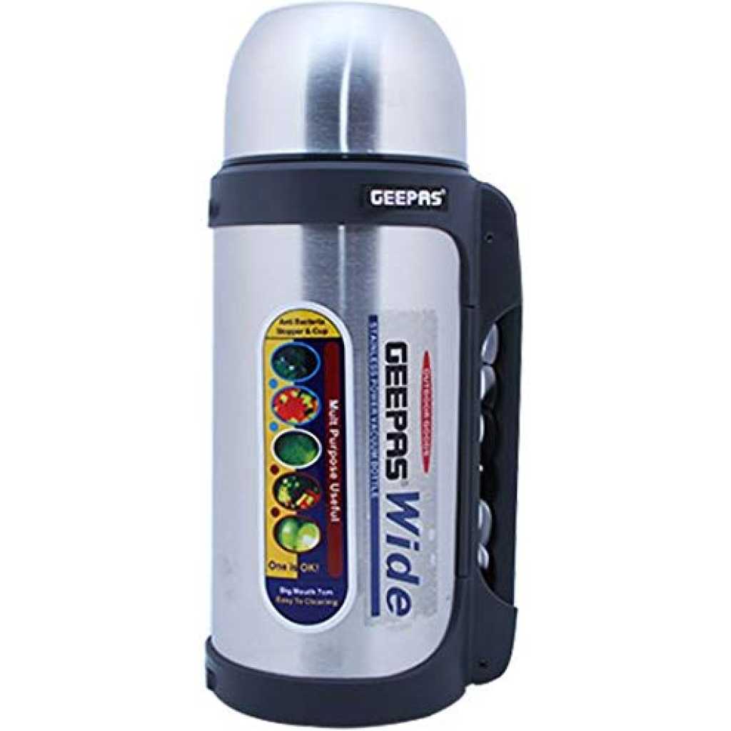 Key Features: GSVB4111 is a home appliances equipment under the brand Geepas electronic Unbreakable stainless steel Anti bacteria stopper & cup Superior thermal retention Capacity : 1.5 Liter Brand : Geepas Kitchen and Dining Type : Drink Chillers