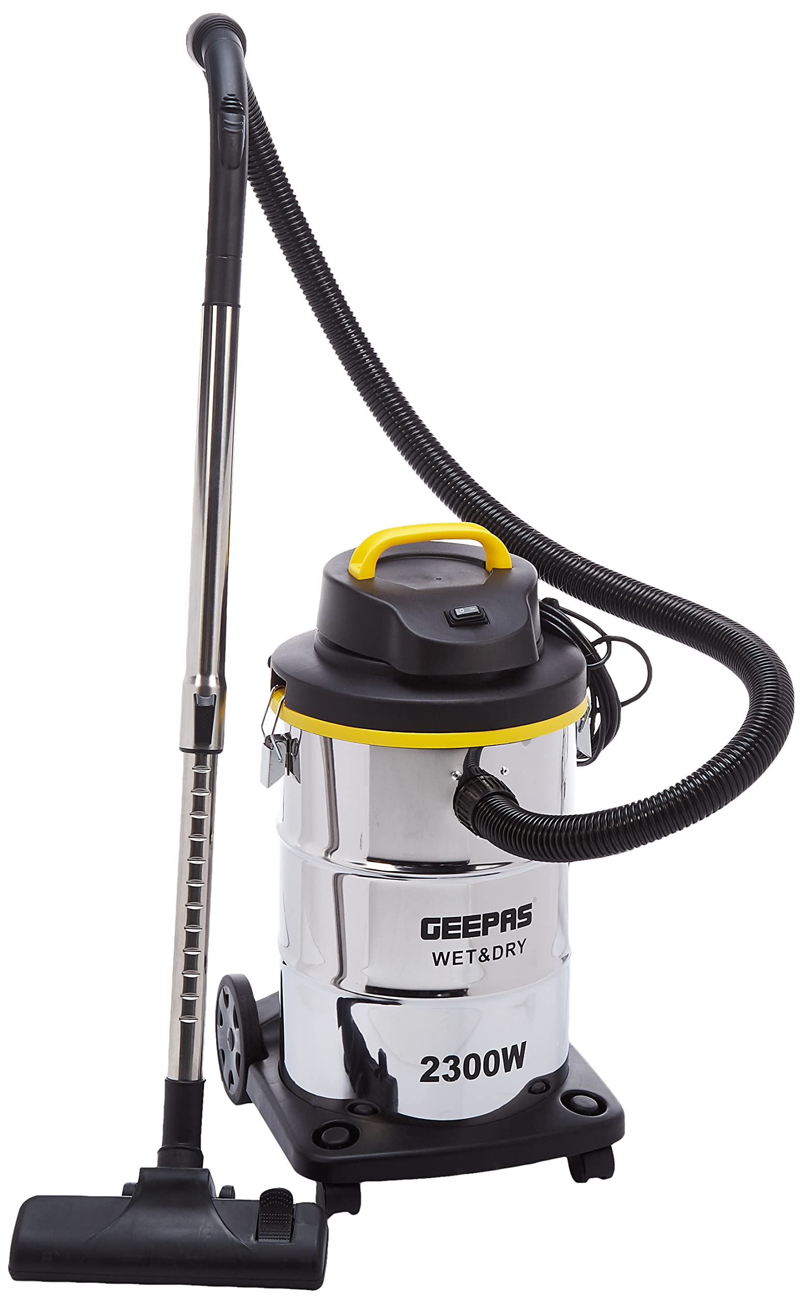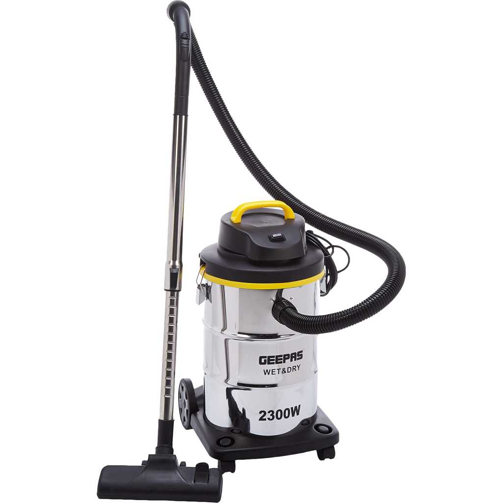Geepas Dry Vacuum Cleaner helps you remove the dust, wrappers, and other trash from your home with ease. It has dual functioning and works just as fine as a wet cleaner. It can help you clean up coffee spills; water puddles and splashes quickly and efficiently. It has a large dust bag storage of 23 liters and a stainless steel tank. With this much space, it can handle a few cleanings without emptying and saves your time. Lightweight- ideal for large-scale or frequent cleaning; easy to empty, remove any solid debris by detaching the motor unit from the drum, and discarding the waste. A uniquely engineered 2300W powerful motor creates strong suction performance. You can clean fast and more. The specially-designed floor head is perfect for small or large particles and parquet cleaning. The vacuum is as such lightweight. You can take it easy by hand from house to yard. In addition to this, the vacuum has glide wheels. HIGH-PERFORMANCE MOTOR – This vacuum is equipped with a 2300W pure copper motor, which can deliver top-line power and performance, making this vacuum easy to clean your automobile, house, van, and workshop anytime, this vacuum cleaner offers a large capacity tank. STAINLESS STEEL TANK – The vacuum cleaner is built with durable stainless steel 23L large capacity tank to clean your kitchen, hall, bedroom, passage, and more without frequently unloading the dust tank, which is even easy to clean with just a wipe with a wet cloth.
