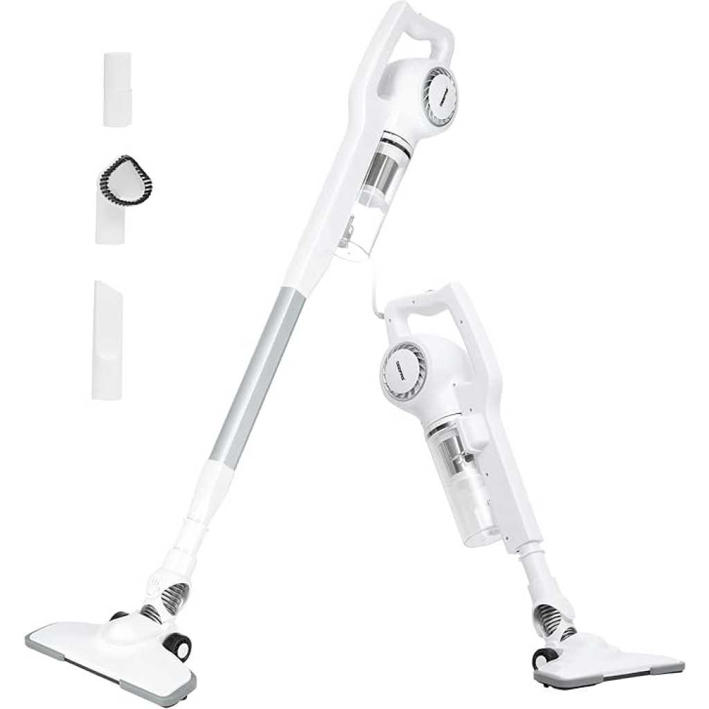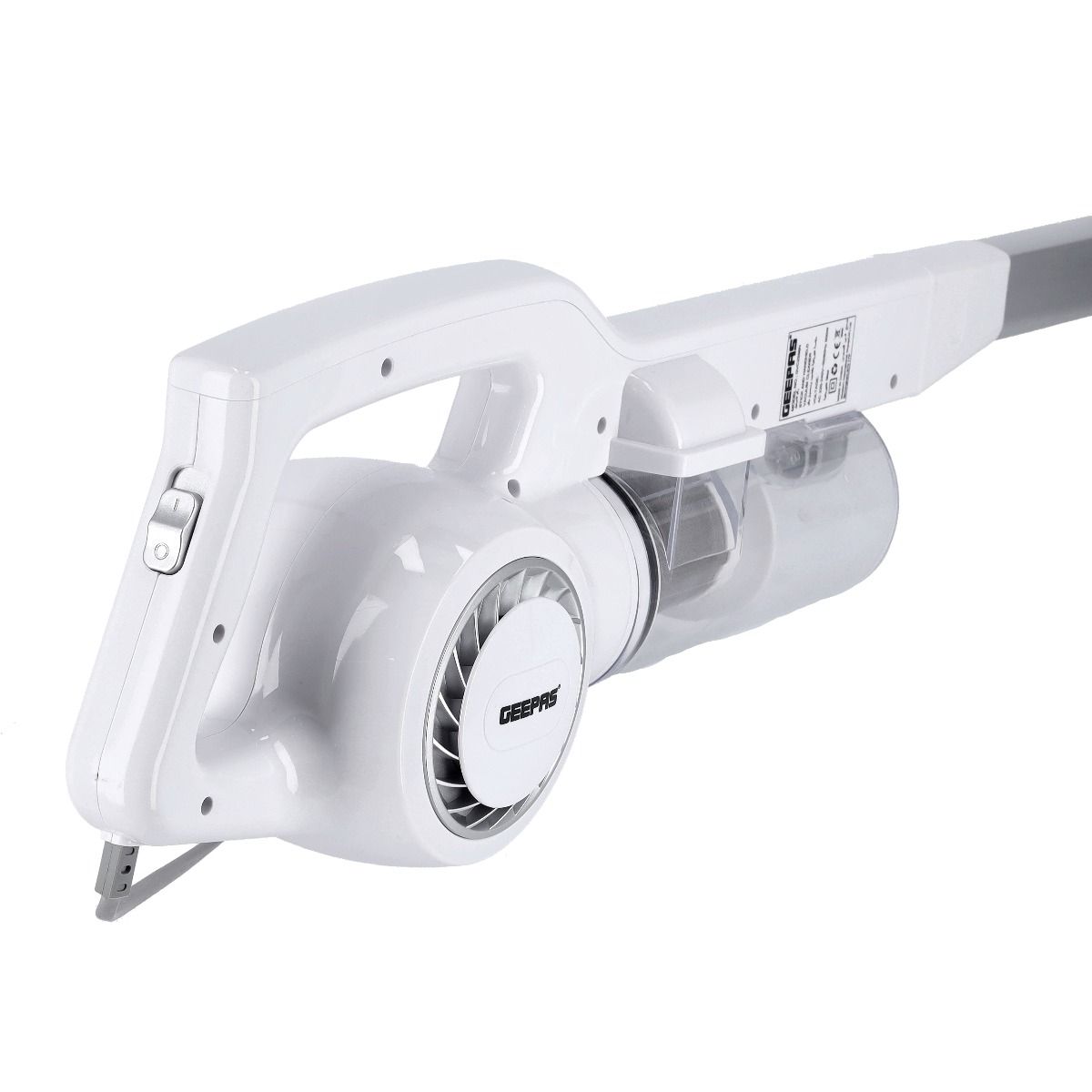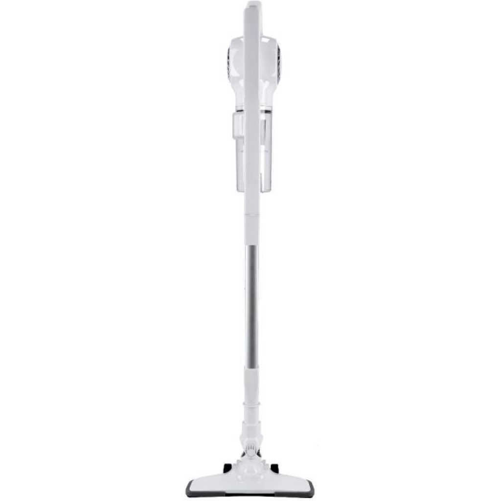 Key Features: Geepas GVC2596 Stick & Handheld Vacuum Cleaner | Hepa Filter | 0.9L Dust Bag. Brand : Geepas Color : White Energy consumption : 600 Watts Package weight in KGs : 3 Tank Capacity : 0.8 Liter.Bagged or Bagless : Bagless.Cordless or Corded : Corded.Model Number : GVC2596.Type : Stick Vacuum Cleaners.Surface Type : Hard Floors