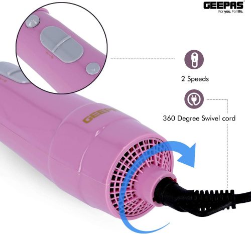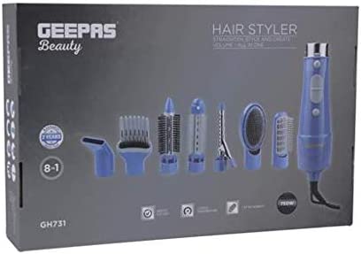 Achieve beautiful looking hair in super quick time with the Geepas GH731 Hair Styler. It has a corded design and runs on a powerful motor to deliver a top class performance. This hair styler includes two-speed controls for your benefit. It enables you to change the shape of your hair, giving the impression as if you have just come from the saloon. Also, it has a safety cut-off system that automatically turns off the heat if it begins to overheat, ensuring the safety of your styler. Furthermore, it has a 360 degree rotational cord that prevents unnecessary tangles, for a hassle-free use. Also, this hair styler has a compact design and comes with seven attachments, which makes it the perfect hair styling kit. It is available in a beautiful blue and Pink finish. Key Features Hair Styler Corded Electric GH731 Remarkable Performance Create a number of hairstyles with this fantastic Geepas Hair Styler. It features two-speed options that offer maximum convenience by letting you set the speed as per your styling requirement. This hair dryer runs on a powerful motor that ensures you of a top class performance, every single time. Innovative Design This Geepas multi-functional hair styler has a clever modern design and is incredibly simple to use. It has an ergonomic make and is incredibly light in weight and compact, which offers ease of use. This also gives you the freedom to pack it in your bag and take it along wherever you go.