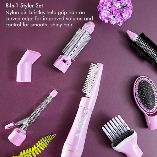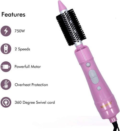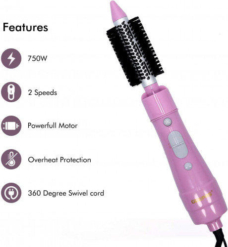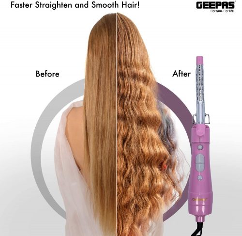 Key Features: 1. 2 SPEED SETTINGS – You can change the heat settings with the help of two buttons located on the body of the hair styler brush. Temperature can be adjusted according to your desired shape & style. 2. 750W POWERFUL MOTOR – The greater the power of the device, the faster and better it copes with its task. The power of this styler is 750W, which is the most optimal solution. With this, you can spend a minimum of time and get the most benefit. 3. BLOW BRUSH INCLUDED – It will be much more perfect for you to shape your hair or to dry it with a special hair brush. Attach it to the body of the device to start creating. After use, you can remove the blow dry brush and rinse it in clean water. With this easy-to-use geepas Styler, the hardest part is deciding which look you want to work. 4. 3 IN 1 HAIR STYLING – Curling tongs set includes 3 interchangeable sets; Small roll brush, half brush and Curling iron to get desired hair styles from beachy waves to tight curls, from long hair to short hair, you’ll enjoy endless hairstyles at home instead of going to the hair salon, save your money and time. 5. OVERHEAT PROTECTION, COOL FUNCTION – If you are afraid that the device will overheat, then you shouldn’t worry about it really. This hot hair brush is protected from overheating. Also it has a cool function where in you cool down your hairs once you have completed your hair styling. 1. Large Paddle Hair Brush Head – Faster Straighten and Smooth Hair! This paddle brush head is design to smooth hair while drying hair, give you soft and natural straight hair with less frizz, save your time. 2. Round Hair Brush – For Curl Hair, Add Hair Volume. This round hair brush combines the hair dryer, curler, volumizer and brush, so you can blow dry your hair in a single step and save your time. 3. Round volumizing brush – Engineered to set volume and shape fine, flat hair. Compatible with the Dyson Air wrap styler. 4. HOT AIR BRUSH – This one step hot air brush combines a blow dryer, a hair curler and a hair straightener into one. The multifunctional feature enables you to meet different needs. Simply change the attachment and get it started. 7. Hot Air Tong – This will give you hot air blow to easily and quick drying your hairs and style it perfectly. 8. 360 DEGREE SWIVEL CORD, HANGING LOOP – With 360-degree swivel power cord, you can curl by yourself at any angle. Easy to store with hanging loop to avoid clutter on your dressing table. Assorted Color