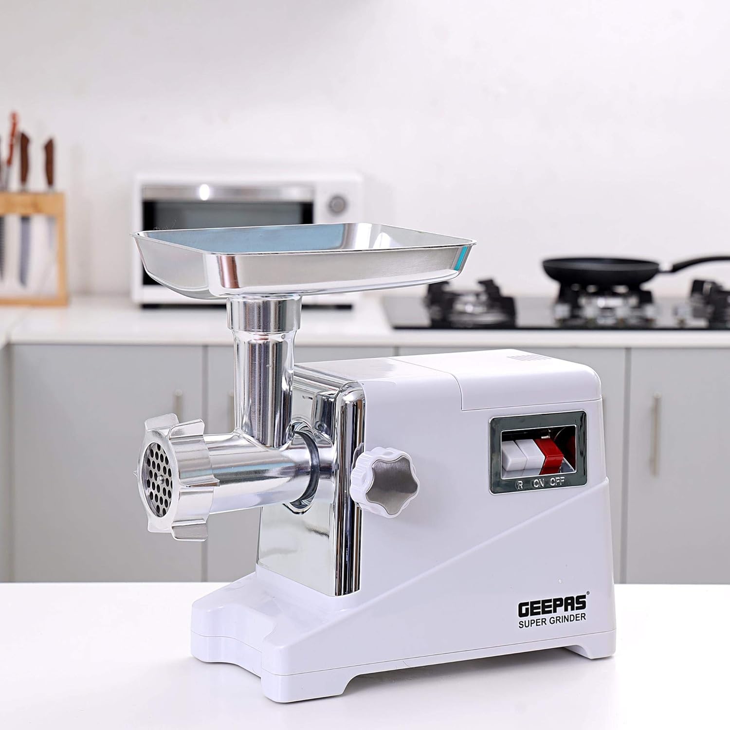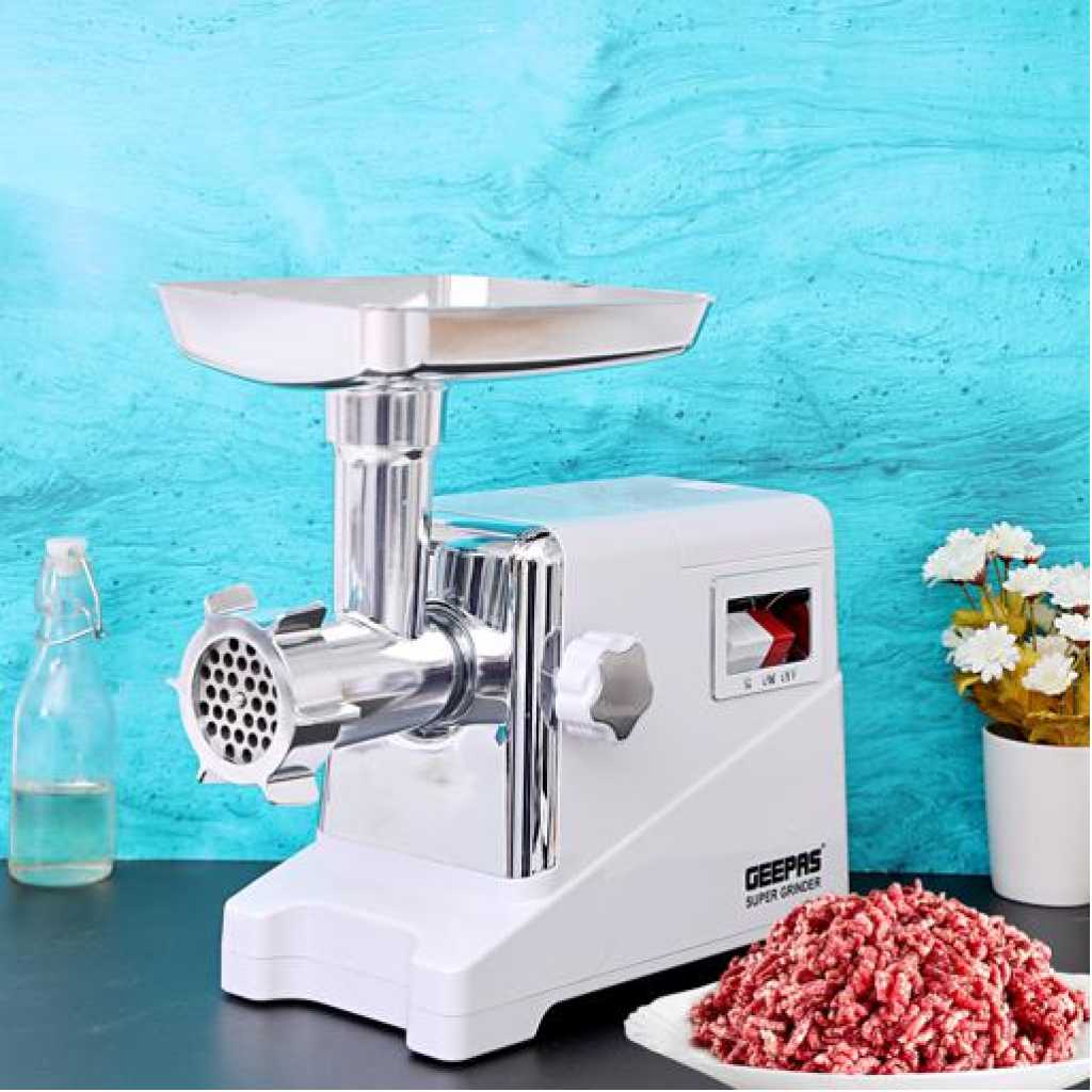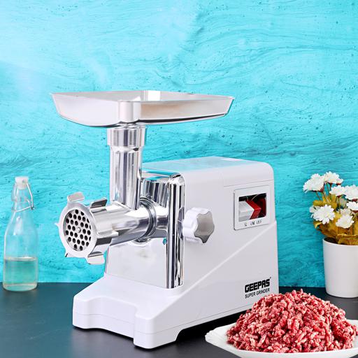 Key Features: This Geepas Meat Grinder comes with a reverse function Strong and durable stainless steel die-cast blade The maximum power of the grinder is 1600W The motor is engineered by copper material supported by metal gears and the gear box is composed of Aluminum 3 cutting plates: 3mm, 5mm and 7mm. Transfer AC voltage of 220-240V 50/60Hz at the rate of 300W Comes with free accessories for sausage, kibbe and food pusher. Product size: 33×16.5×24.5cm