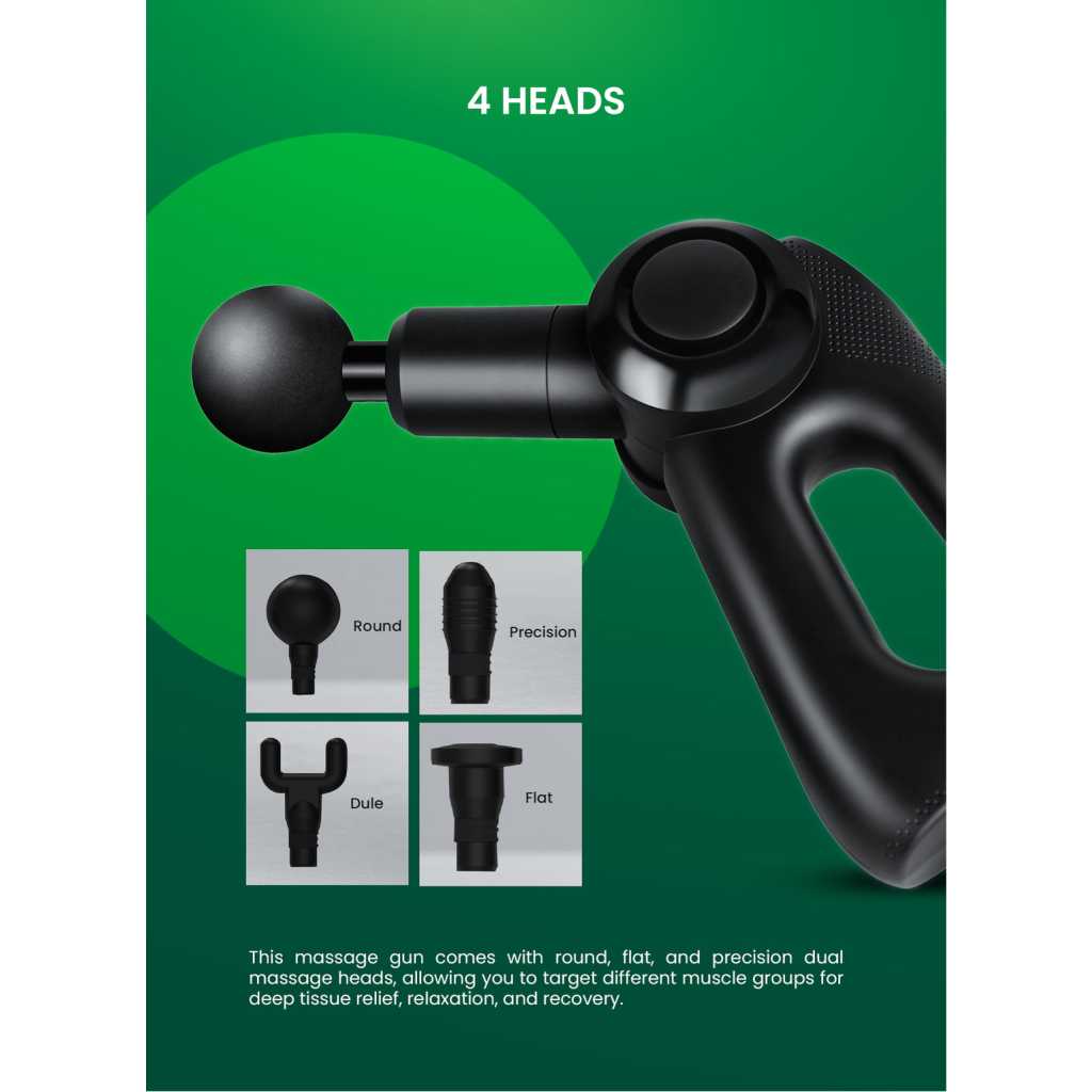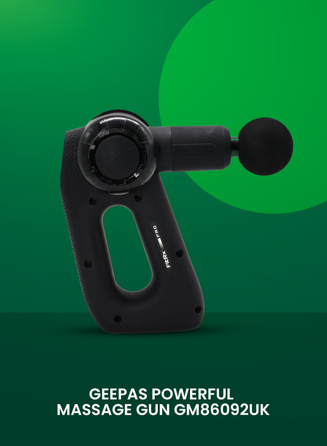 Geepas Powerful Massage Gun- GM86092UK/ 5-Speed Function, LED Indicator, Folding Design with 3 Adjustable AnglesBlack, 2 Years Warranty 5 SPEED FUNCTION: Featuring five adjustable speed levels, this Geepas massage gun provides flexibility to choose the right intensity for your needs. LED INDICATORS: The built-in LED indicators keep you informed about the battery status, speed levels, and charging progress FOLDING FUNCTION: Designed for convenience and portability, the massage gun features a folding function with three adjustable angles, allowing for customized comfort while massaging hard-to-reach areas. Plus, its compact foldable design makes it easy to store and carry. TECHNOLOGY: With its advanced quiet technology, this massage gun operates smoothly with minimal noise, making it suitable for use at home, the gym, or even at the office without disturbing others. POWERFUL BRUSHLESS HIGH TORQUE: Engineered with a high-torque brushless motor, this massage gun delivers consistent and powerful performance while maintaining durability for long-term use. PRODUCT COLOR: BLACK Targeted massage, custom comfort. The Geepas powerful massage gun will ensure deep penetration into your tissues and muscles and relieve stiffness, soreness, and spasms. It also reduces stress and boosts your overall well-being. With 4 interchangeable heads; round, flat, precision, and dualthe massage gun can be used anywhere in your body to treat stiffness, soreness, and tightness in muscles and tissues and regulate blood circulation. The massage gun works to improve your muscle mobility and your energy. Also, it increases your blood circulation and reduces stress, thus releasing endorphins. With five adjustable speed levels, you can customize the intensity, whether for a gentle massage or deep tissue relief. The LED indicators display battery status, speed levels, and charging progress, ensuring seamless operation. Its folding function with three adjustable angles provides customized comfort while making it easy to store and carry. Powered by a high-torque brushless motor, the massage gun delivers consistent and powerful performance for effective muscle relaxation. The Classic Quiet Smooth Technology ensures a low-noise operation, making it ideal for use at home, the gym, or the office. A built-in battery energy indicator helps monitor power levels, ensuring you’re always ready for your next massage session. The product is very user-friendly, as it comes with a non-slip handle for better grip. The modern massager aids in the activation of slowed-down muscle groups such as the thighs, hips, back, and other areas of the body, thereby accelerating recovery. The Geepas massage gun comes with a 2-year manufacturer’s warranty.