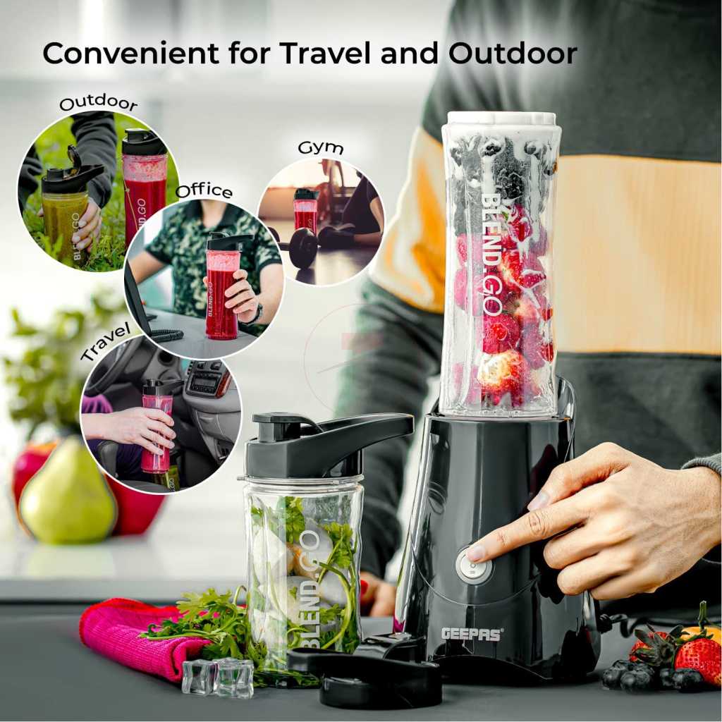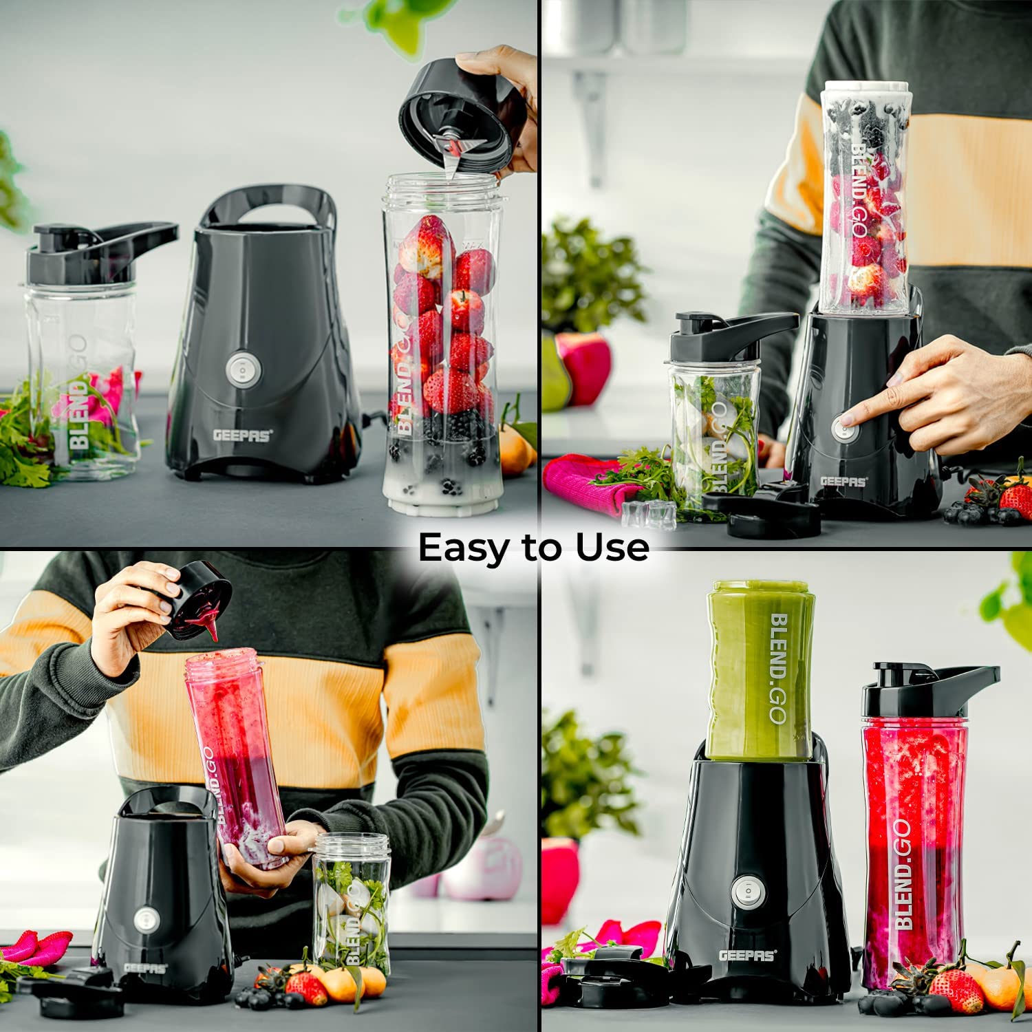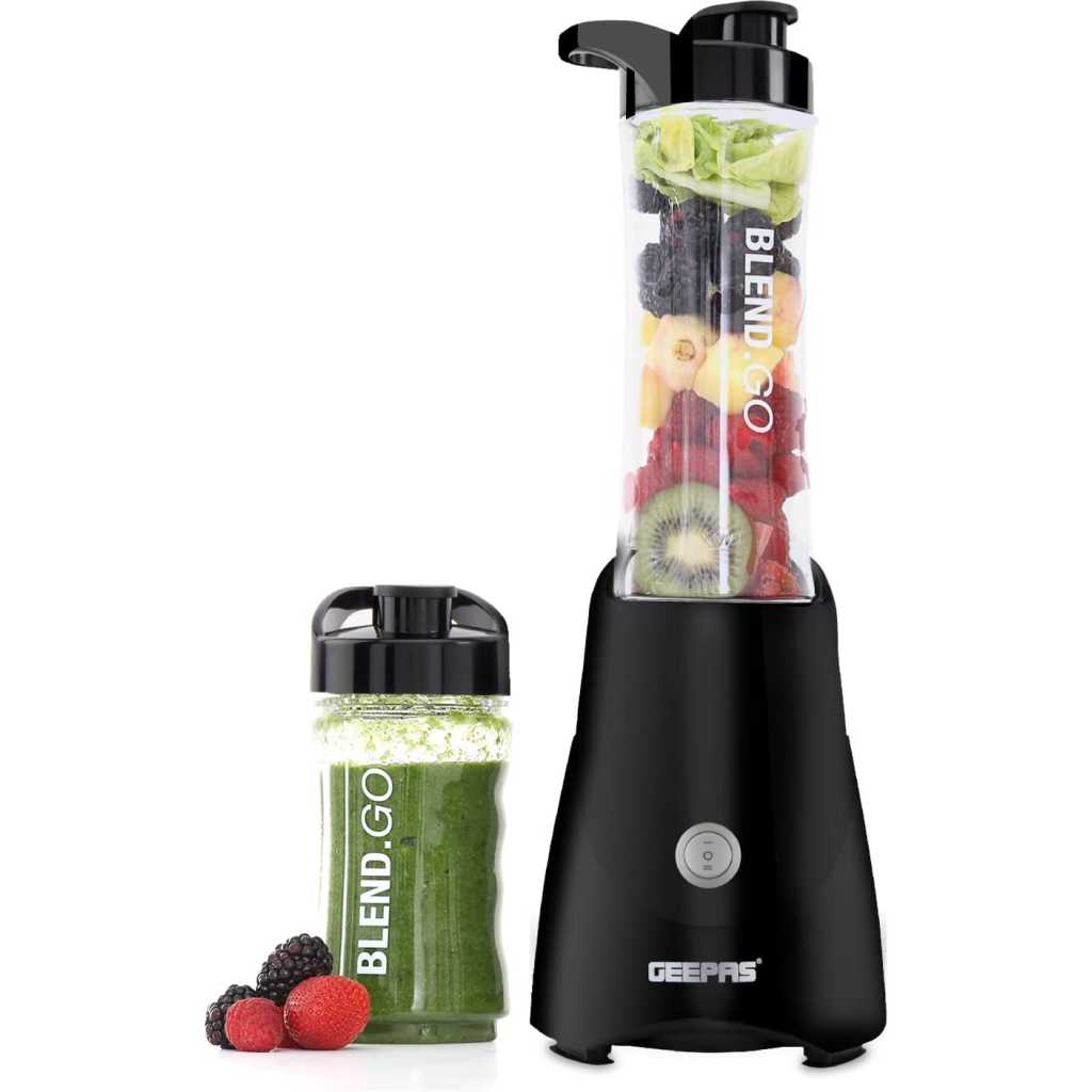 Geepas Sports Smoothie Protein Milkshake Maker Blender, Stainless Steel Blades On/Off Control Personal Blender, 300 W, Black/Clear, GSB44075.